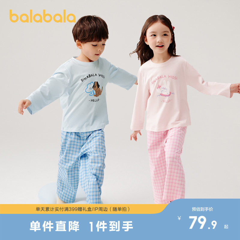 巴拉巴拉儿童睡衣套装亲子可外出男女童家居服小中大童长袖亲肤棉