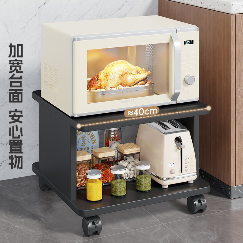 黑色厨房置物架落地两层家用收纳架微波炉架子烤箱储物柜简易锅架