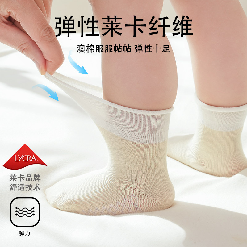 婧麒婴儿袜子春秋季宝宝10A级抗菌中筒袜婴幼儿无骨不勒喷泉棉袜