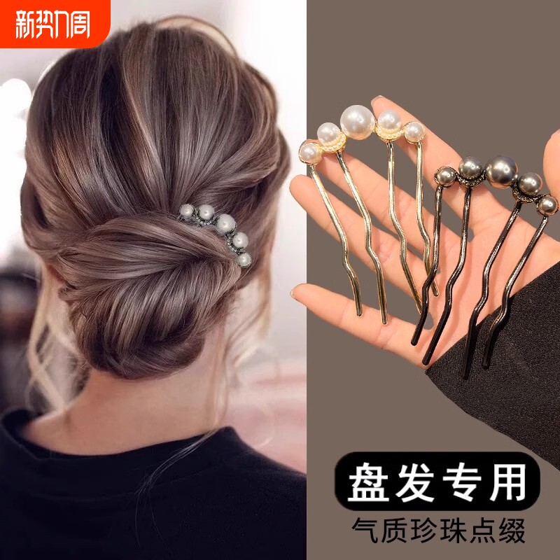 u型珍珠发钗新中式高端丸子头发簪发饰插梳簪子发夹盘发神器高级