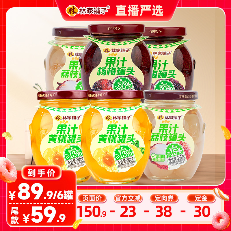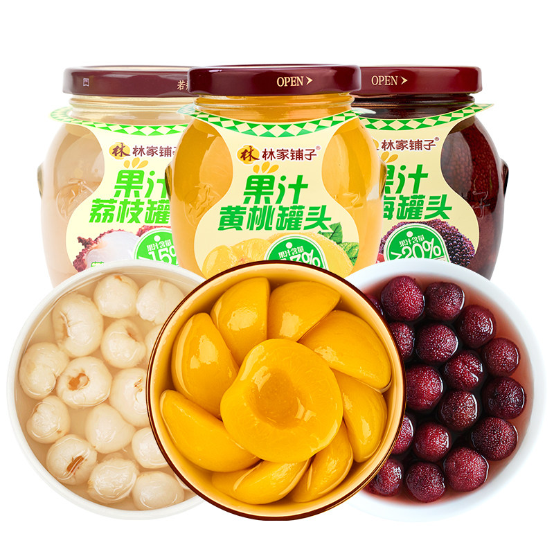 林家铺子6罐果汁黄桃荔枝杨梅罐头梨汁工艺不加糖