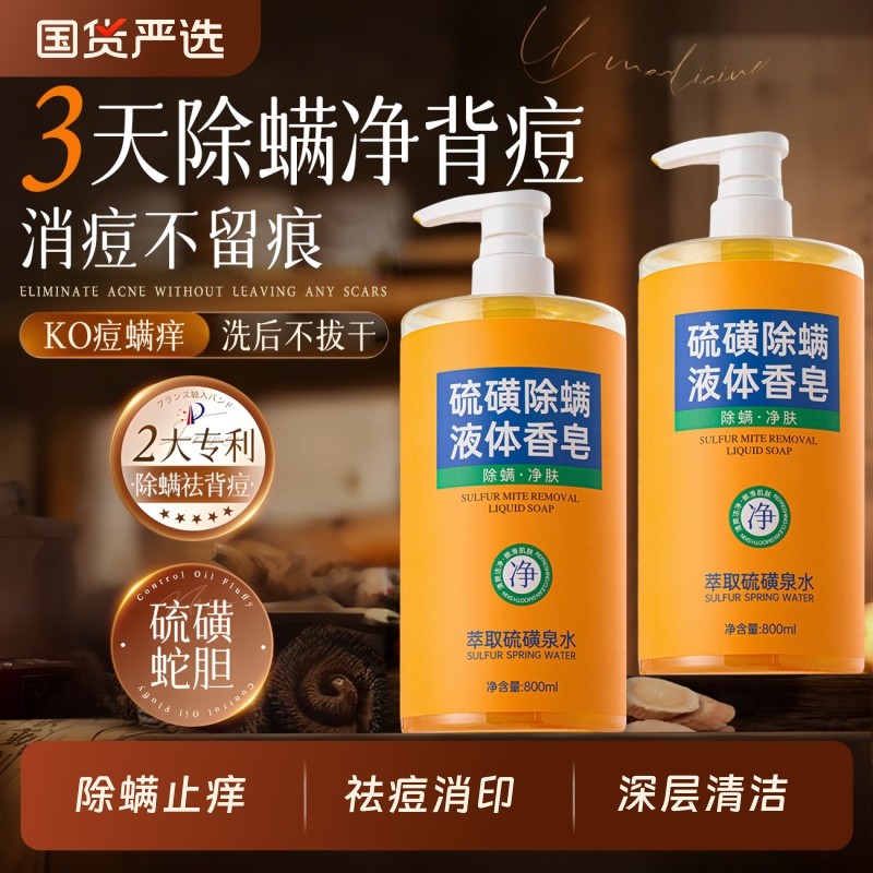 硫磺皂液体除螨虫香皂祛痘杀菌洗头洗澡洗脸三合一沐浴露官方正品