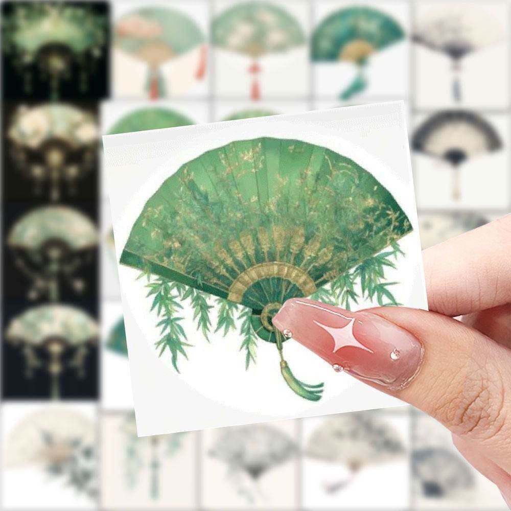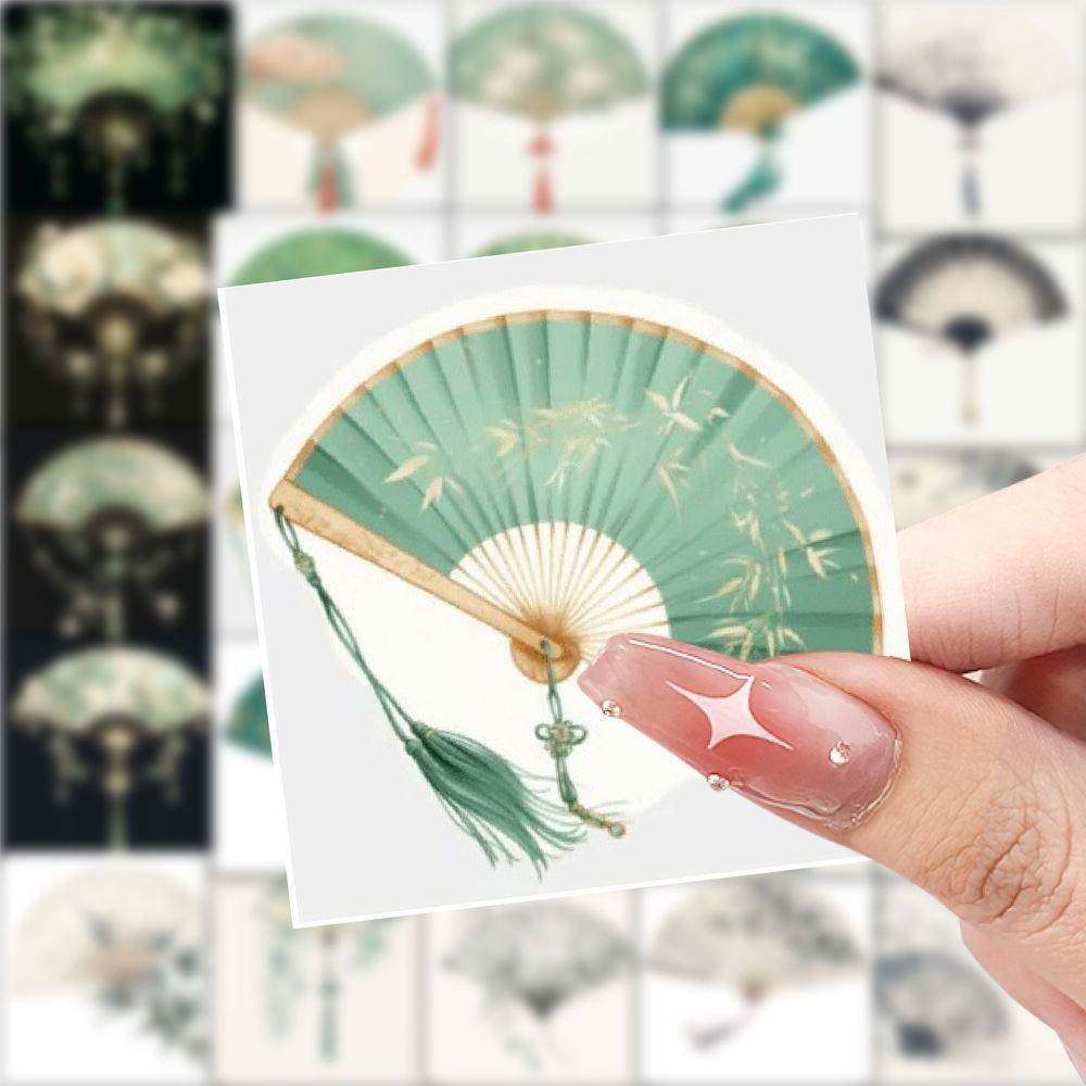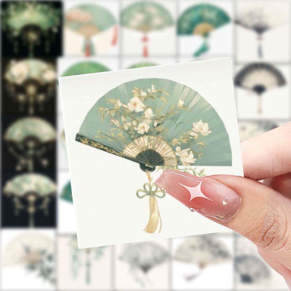 新款古风扇子贴纸唯美创意插画装饰DIY手帐手账水杯素材防水贴画