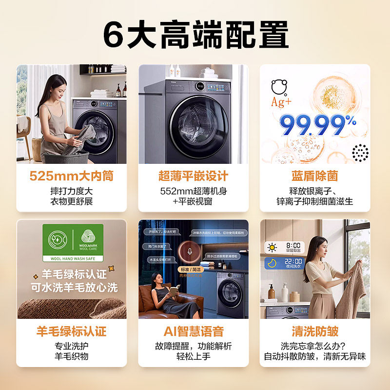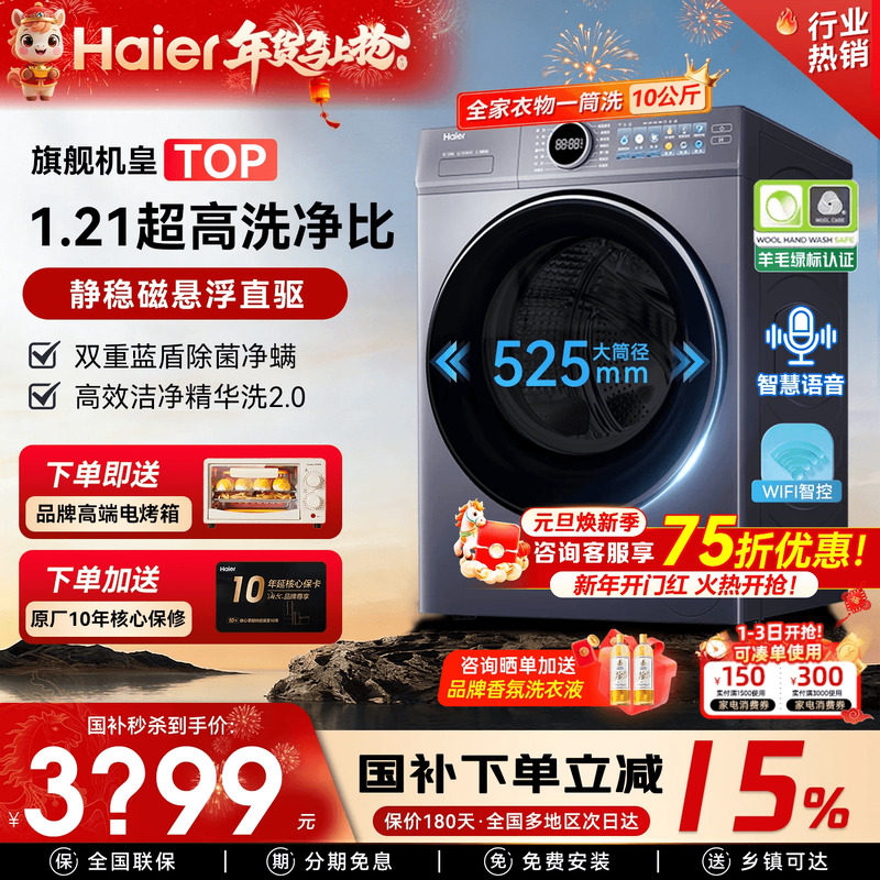 云溪4.0∣海尔滚筒洗衣机77E家用全自动10kg超薄直驱37E洗烘一体
