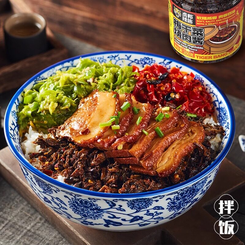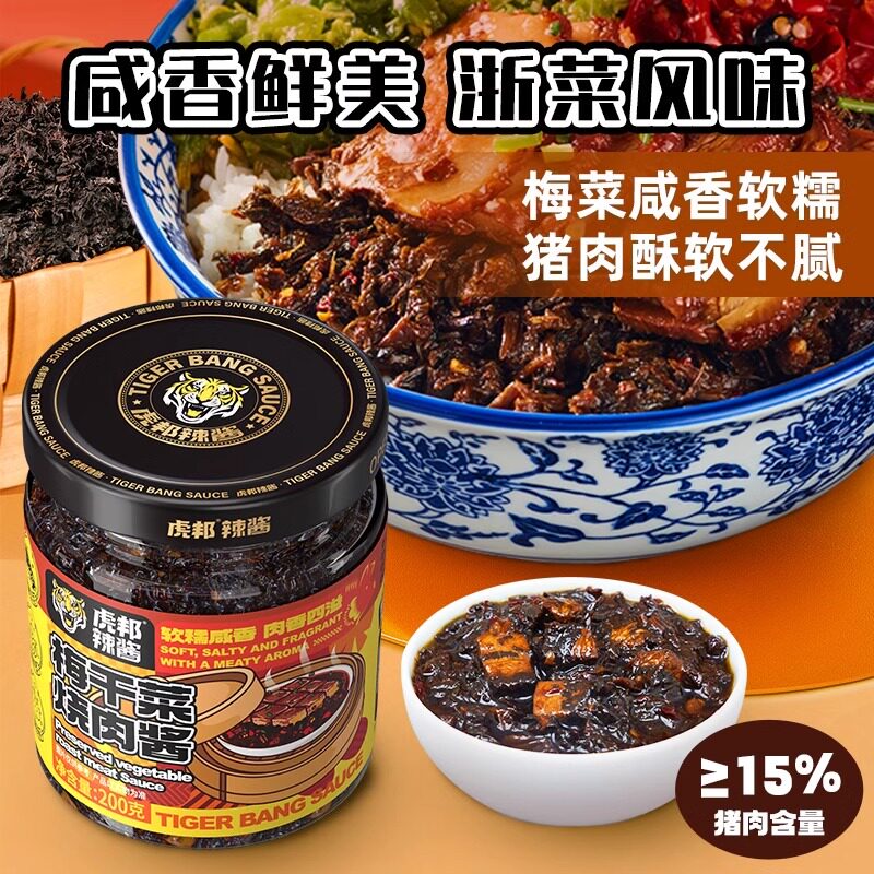 虎邦梅干菜烧肉酱200g梅菜扣肉锅盔馅饼炒拌饭面咸菜即食下饭菜酱