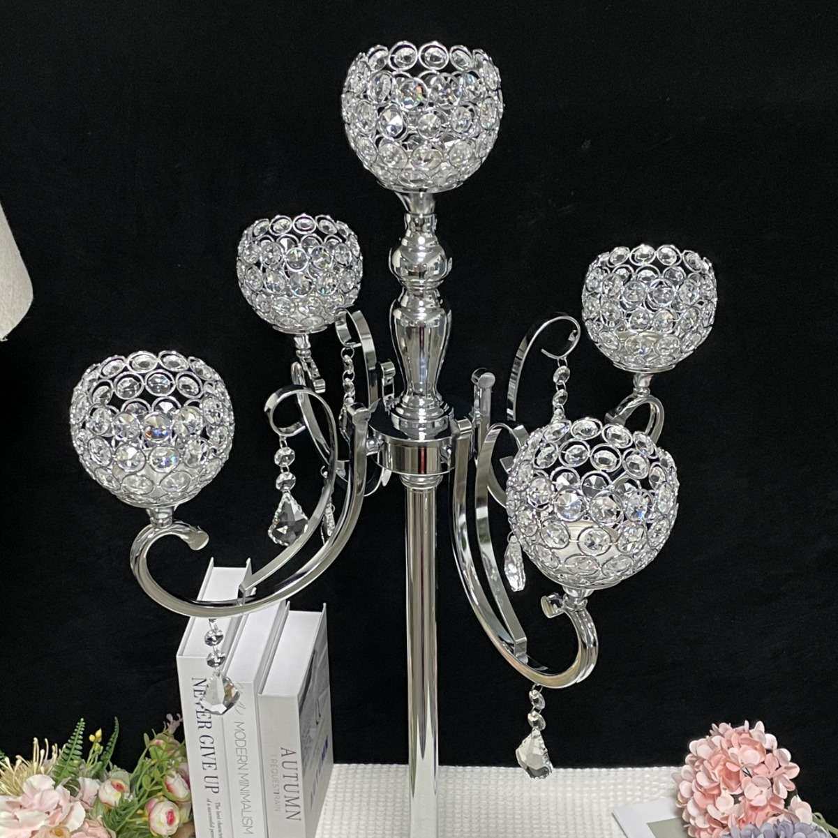 跨境热销婚庆道具梦幻水晶树T台路引5头烛台复古摆件铁艺蜡烛烛台