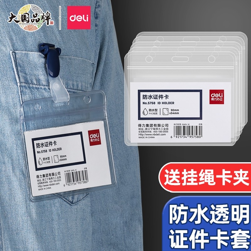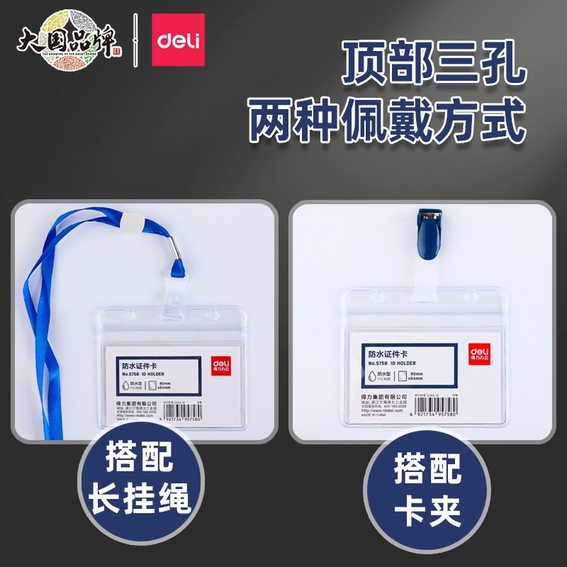 得力防水型证件卡工作牌吊牌胸牌门禁卡套