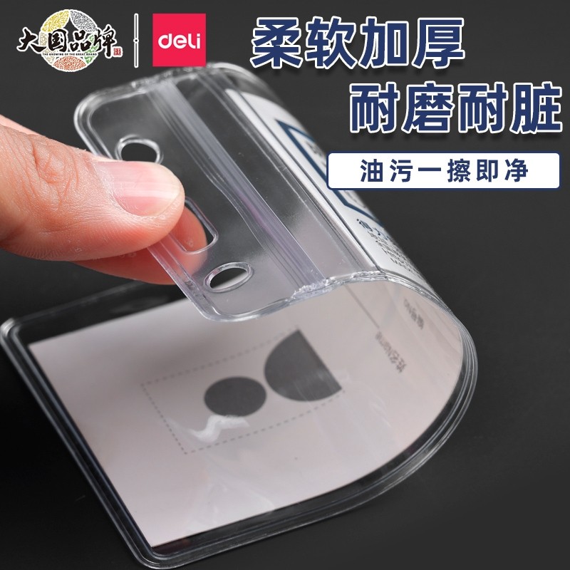 透明卡套得力证件工作证门禁防水胸牌身份证套带挂绳厂牌学生校园卡公交卡饭卡保护套工作牌医院证件套横版