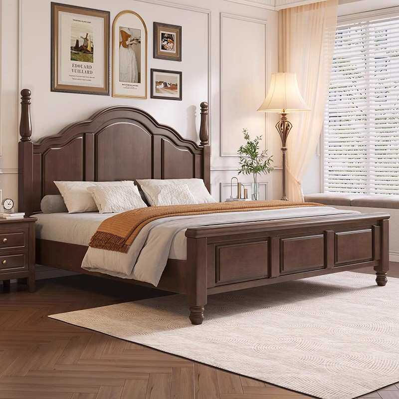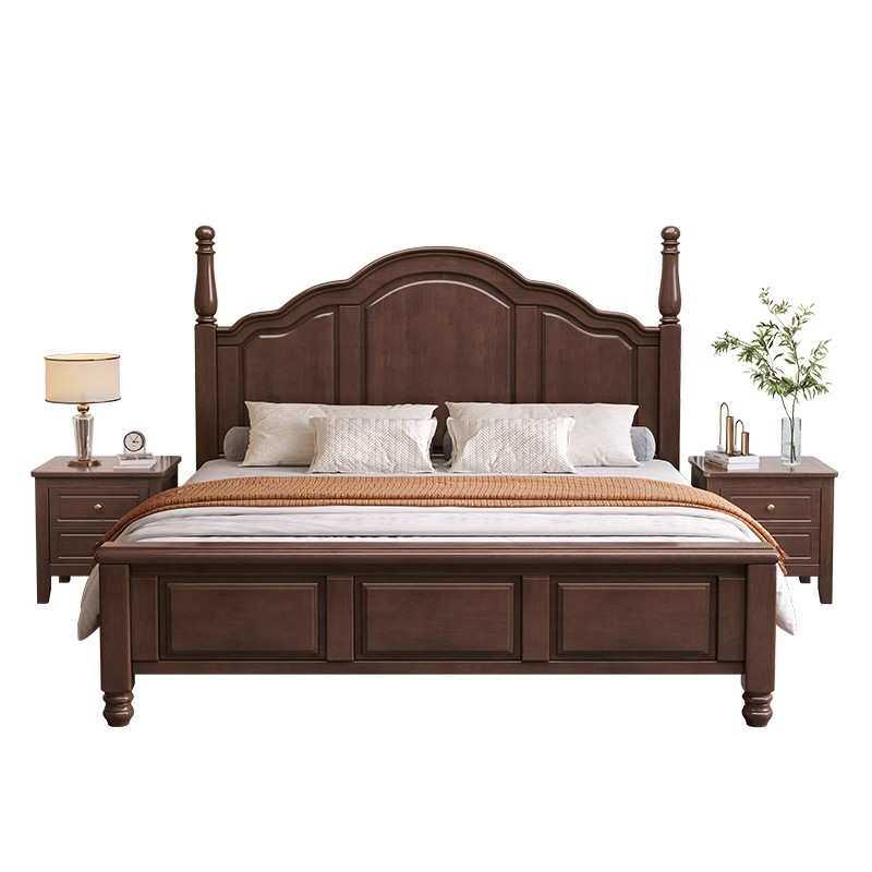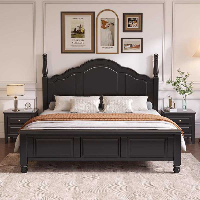 美式实木床主卧黑色双人大床1.5m现代简约轻奢1.8米白色公主婚床