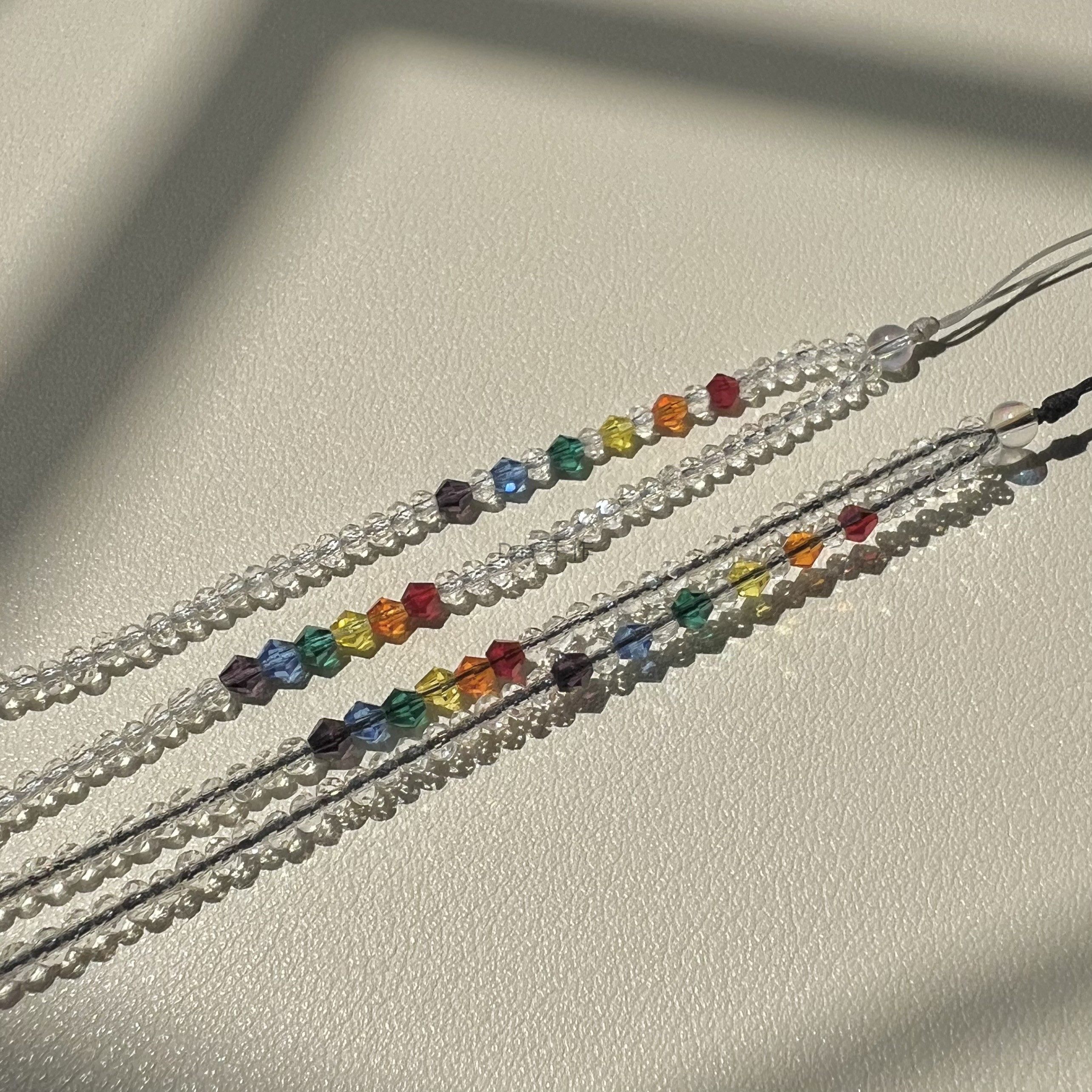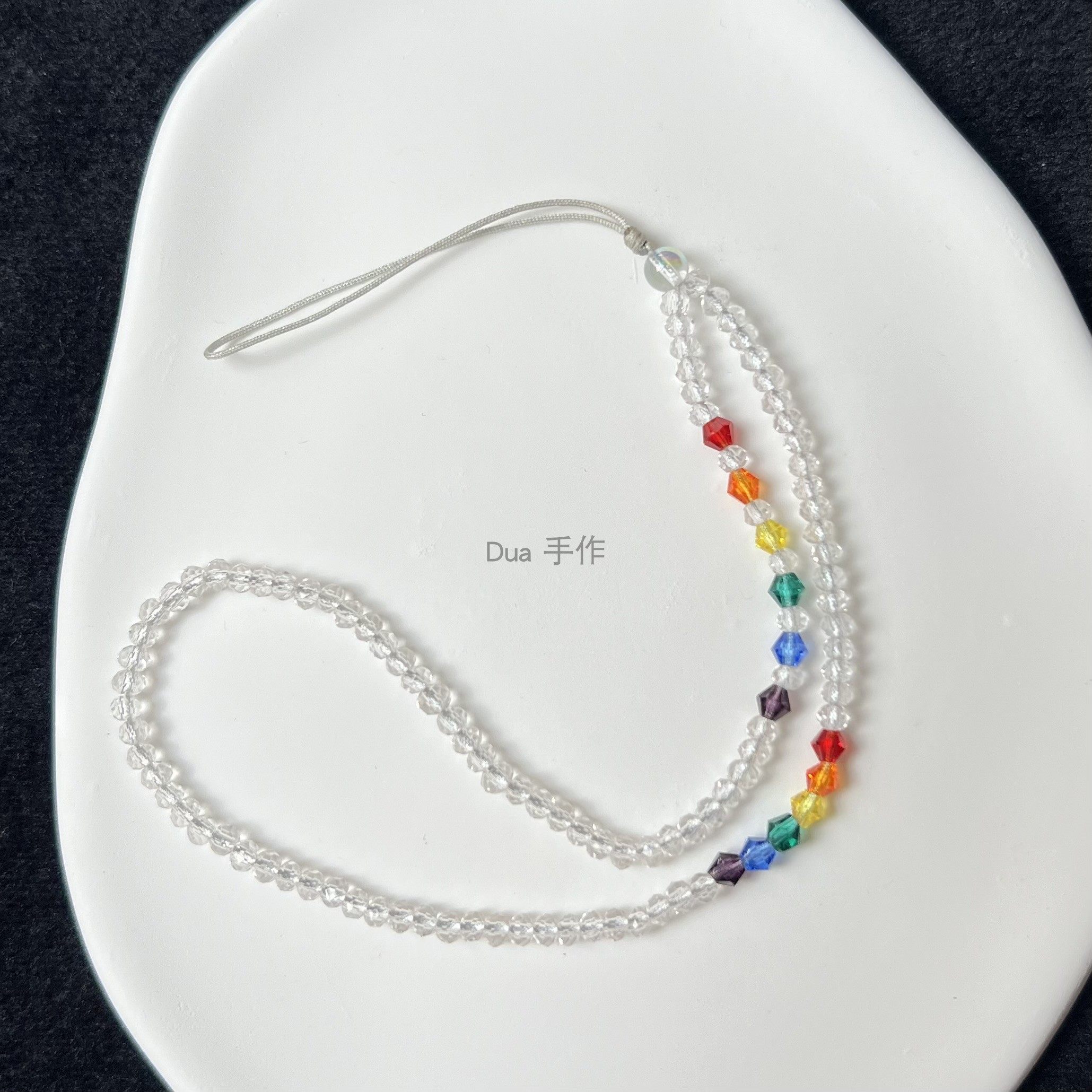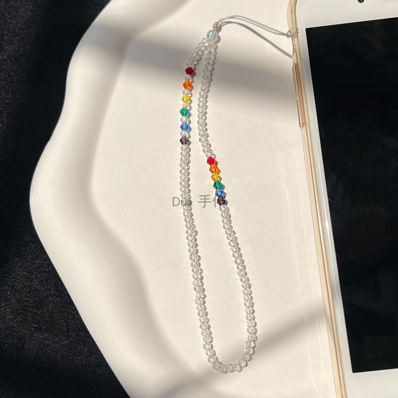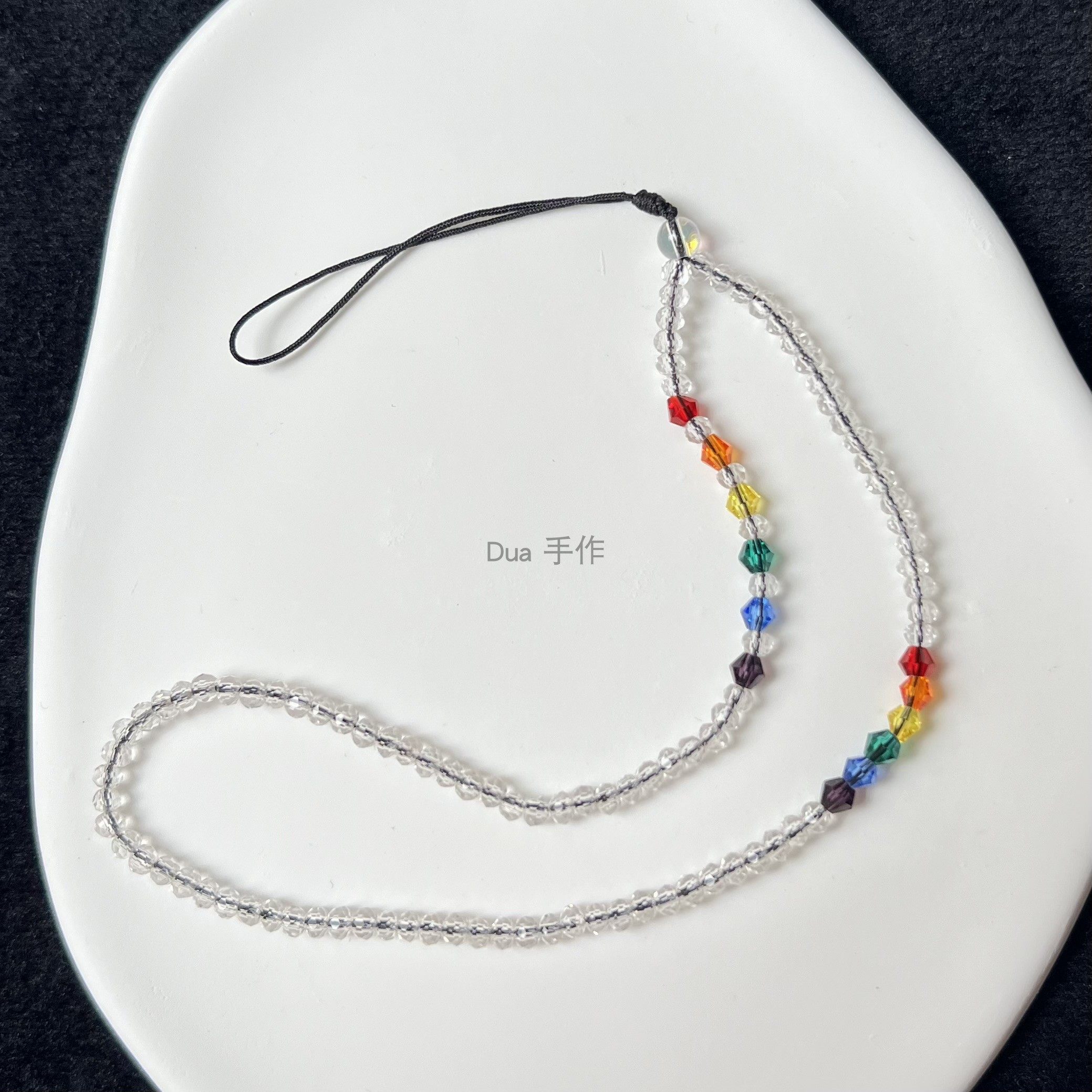 Dua原创七彩虹人造水晶手机链小众串珠夏季挂饰清爽闪亮ins风吊坠