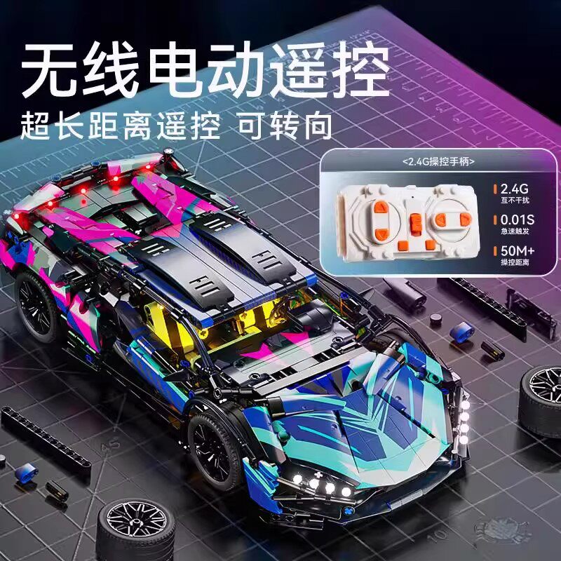 兼容乐高兰博积木基尼跑车模型遥控汽车男女孩拼装玩具赛车布加迪
