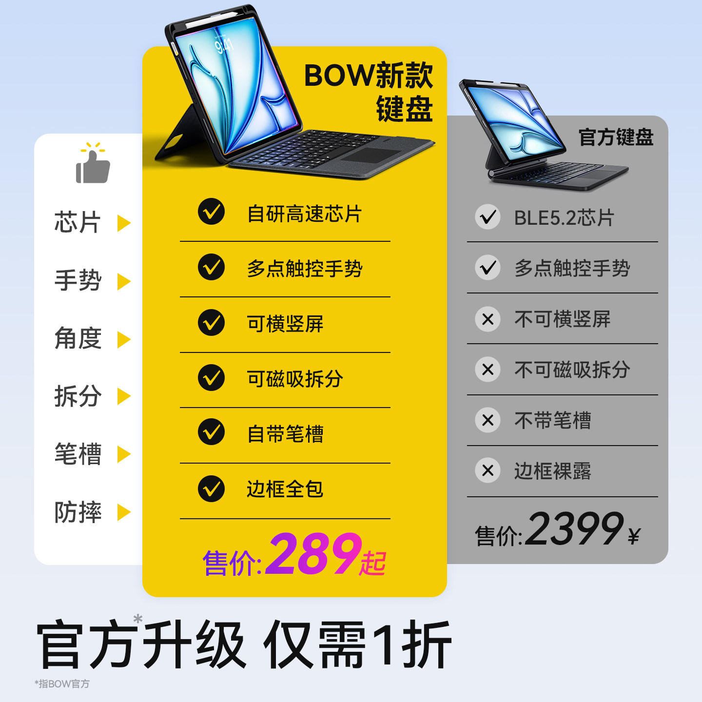 BOW 轻量妙控键盘ipad保护套一体适用苹果10/11/12代air8/7/6平板壳2026新款Pro11英寸磁吸横竖可拆分Air4/5
