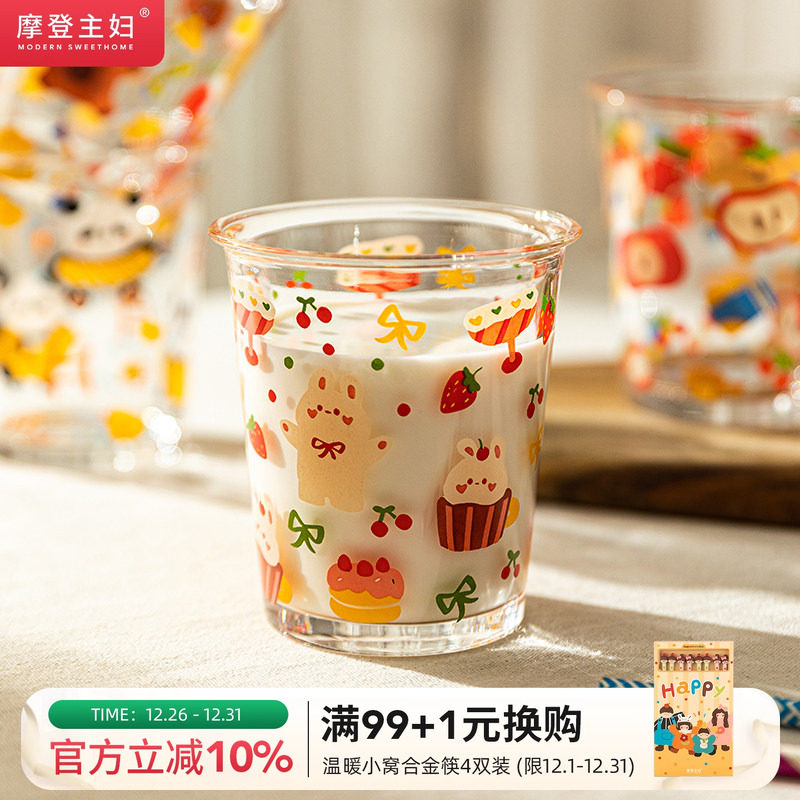 摩登主妇动物派对玻璃杯咖啡杯家用杯子喝水杯高颜值牛奶杯果汁杯