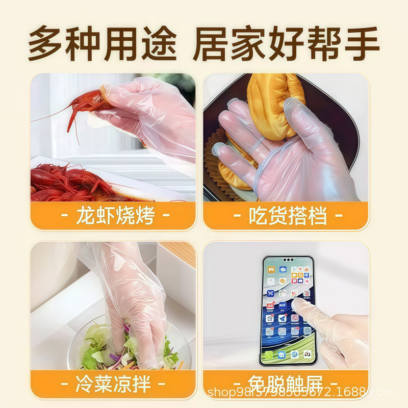 【用不烂】一次性手套食品级专用塑料薄膜PE家用厨房用耐用厨房餐