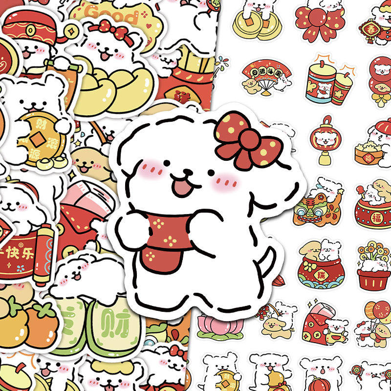 【原创】新年线条小狗卡通小图案行李箱手机装饰贴纸女孩儿童贴画