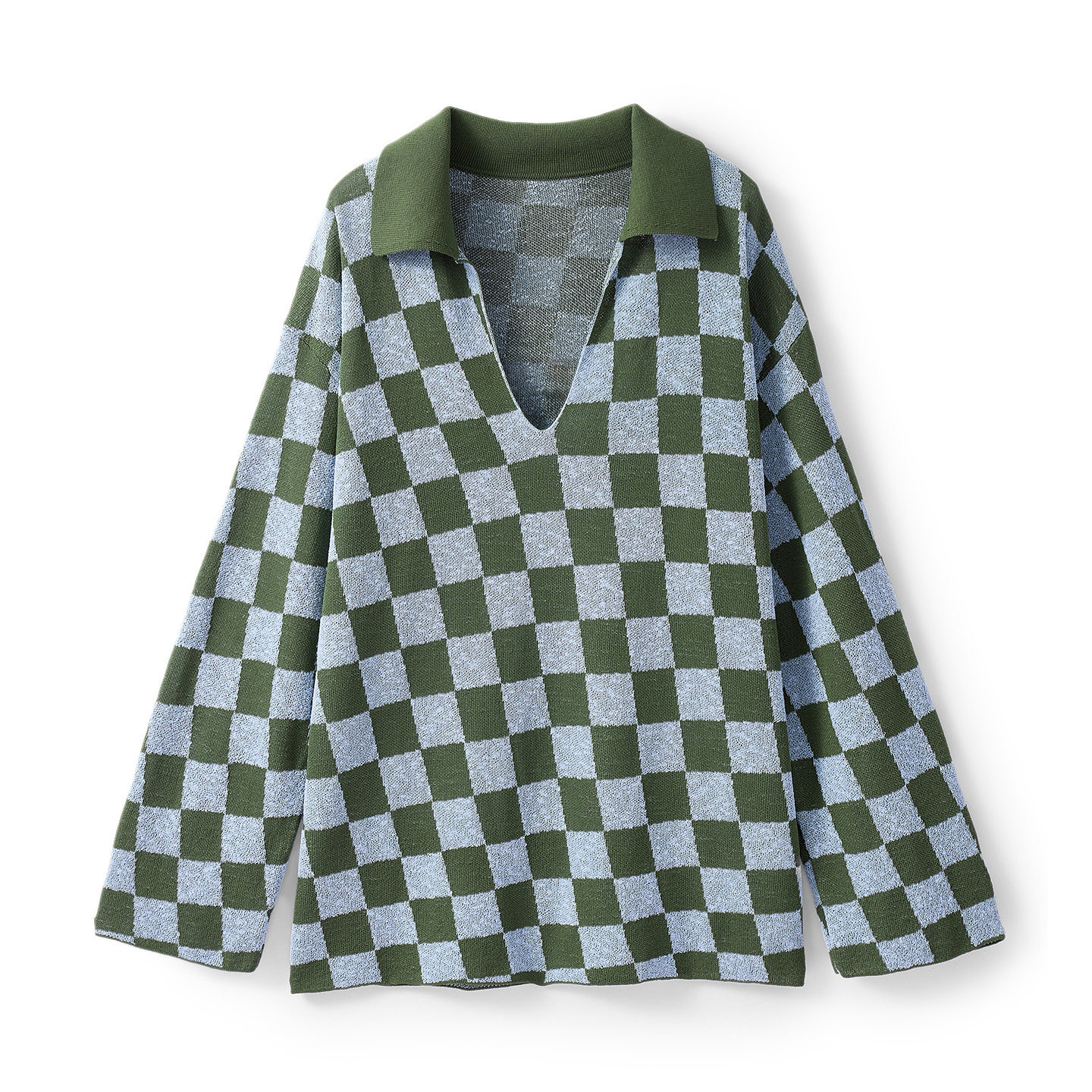 CLOUDSPACE【棋格】色织棋盘格垂感V领显瘦遮肉毛衣春秋上衣女
