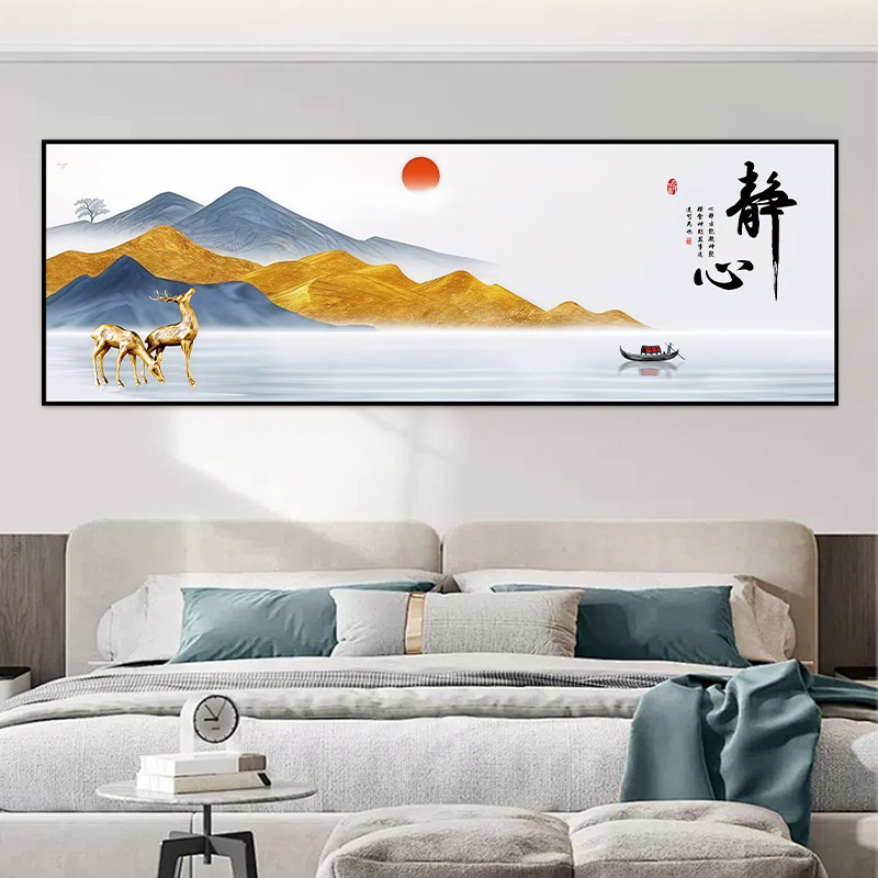 卧室床头背靠金山装饰画客厅挂画自粘中式沙发背景墙贴画壁画贴纸