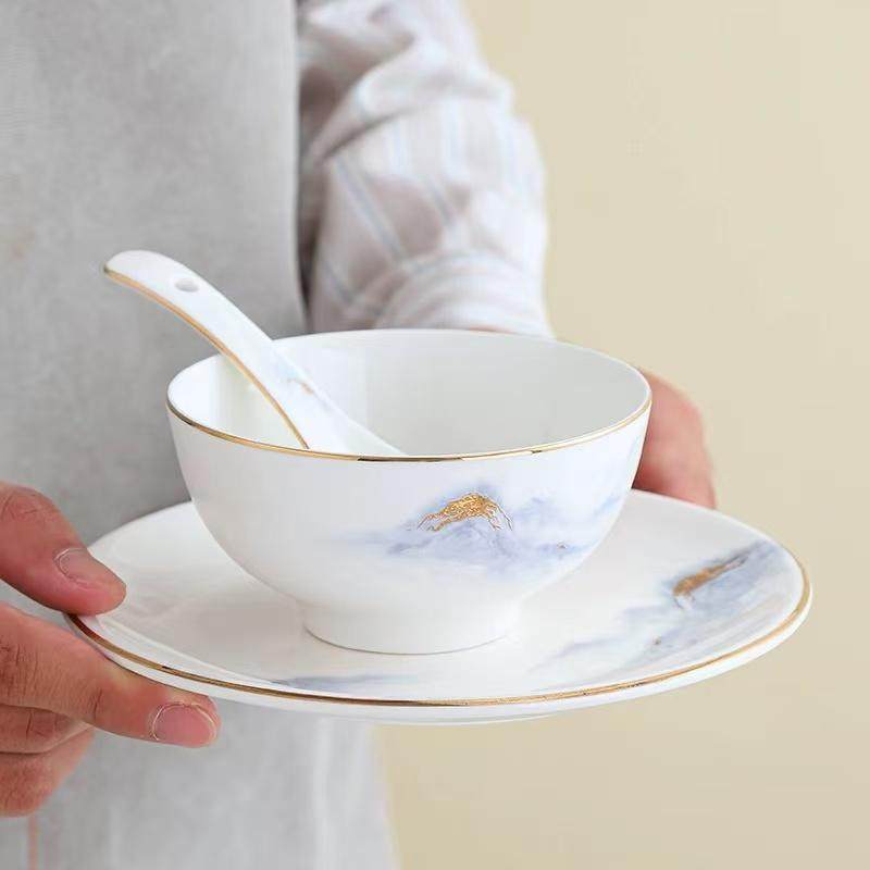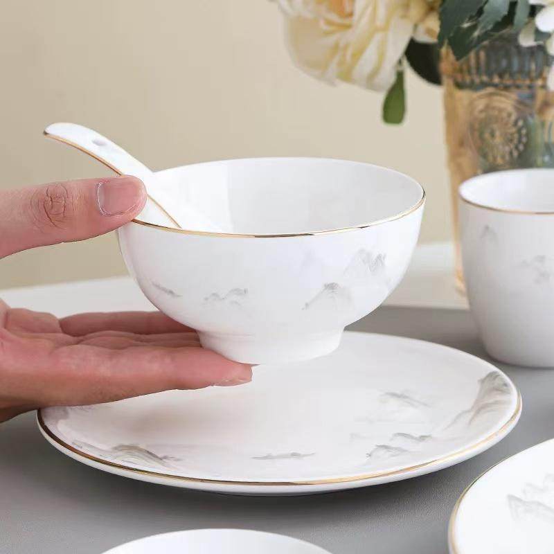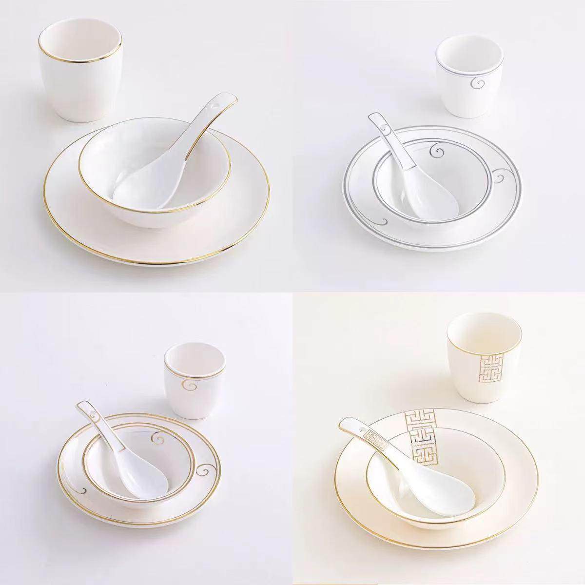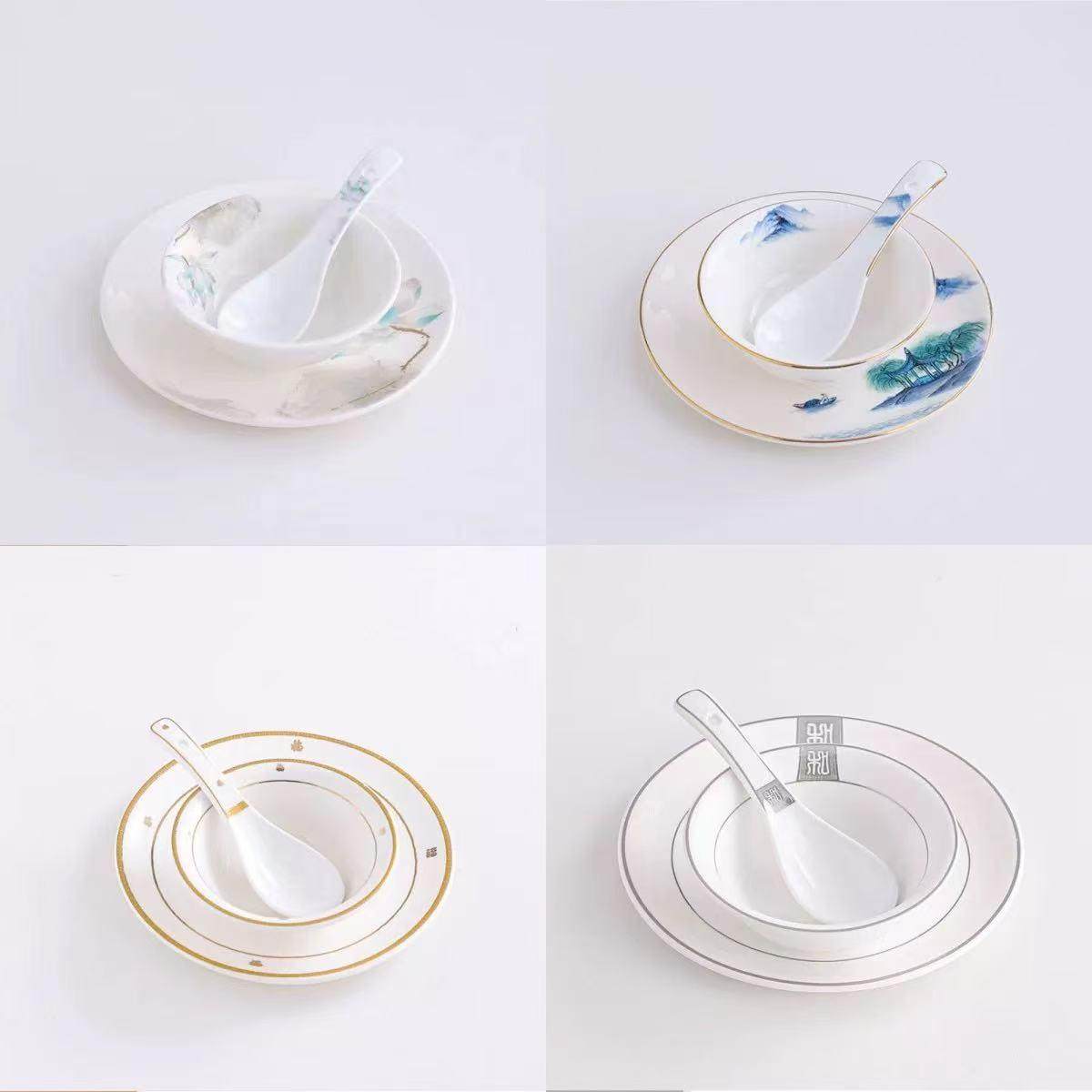 酒店摆台餐具四件套套装陶瓷碗碟盘勺饭店餐厅会所火锅店骨碟商用