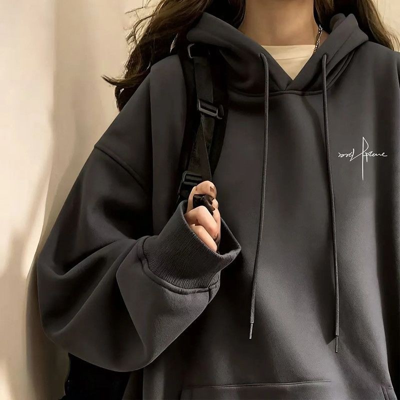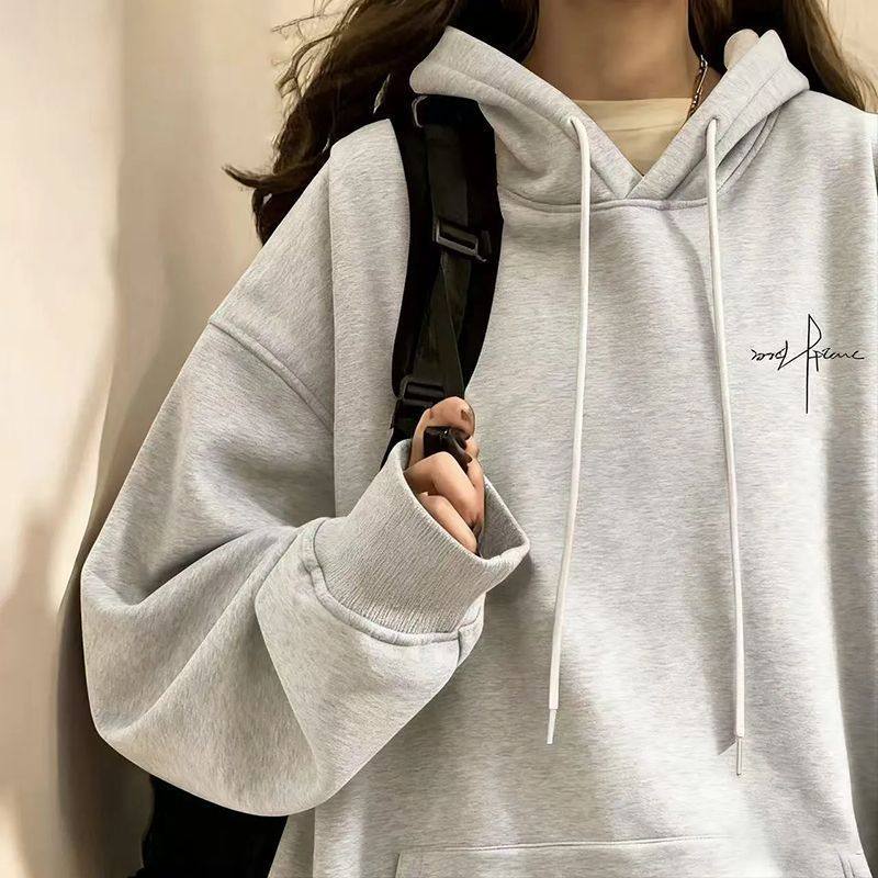 孕妇秋冬新款加绒字母印花连帽卫衣美式复古宽松oversize显瘦上衣