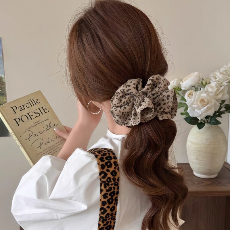 复古豹纹大肠发圈女气质高级感头绳扎头发秋冬百搭发饰法式复古女