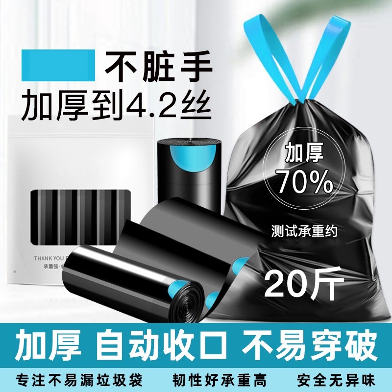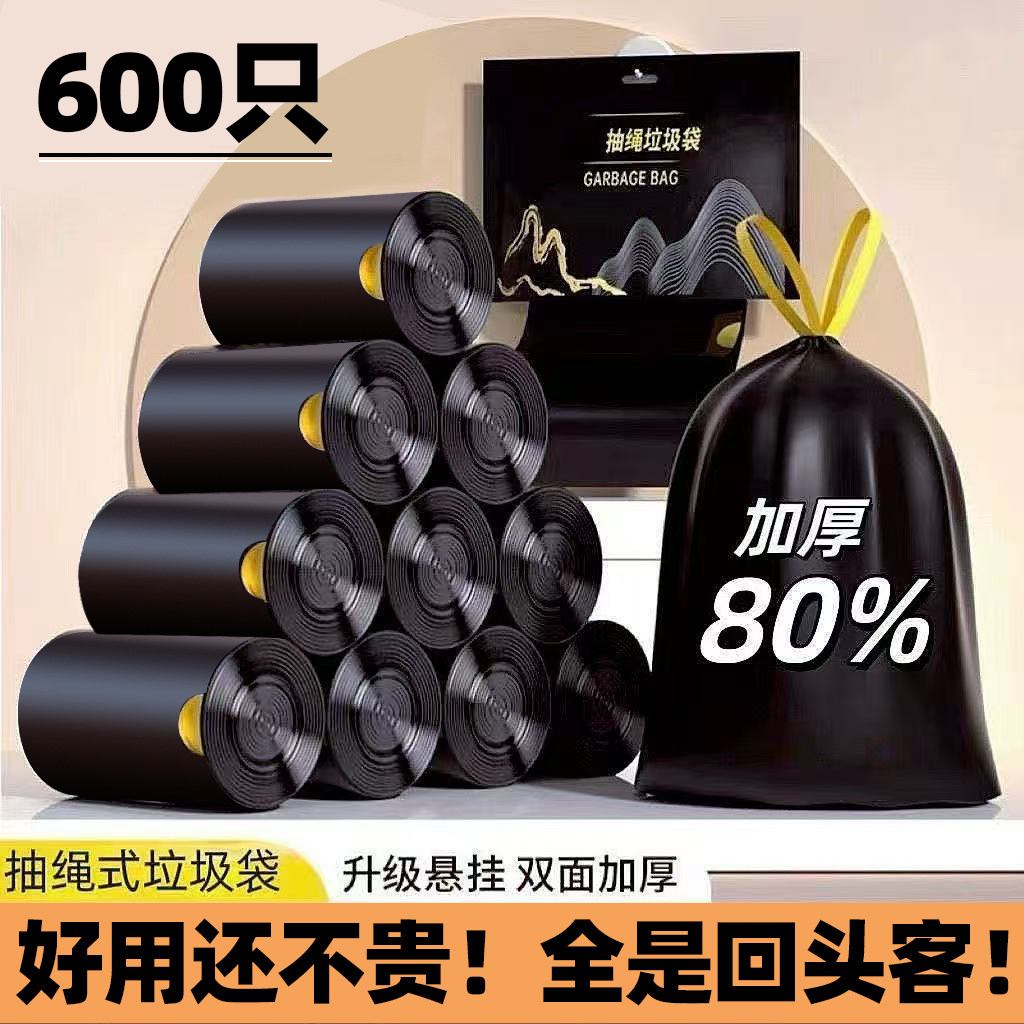 手提式抽绳垃圾袋家用加厚实惠批发装厨房黑色大号垃圾袋