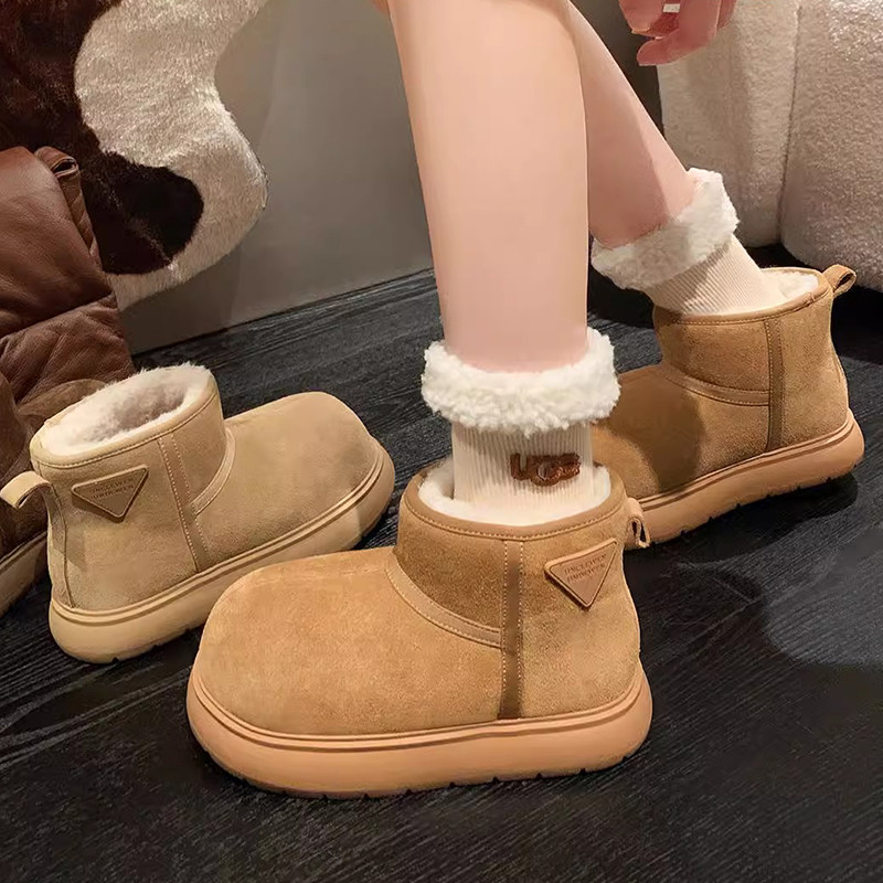2024周冬雨同款真皮雪地靴加厚底短筒加绒短靴增高防滑保暖女鞋