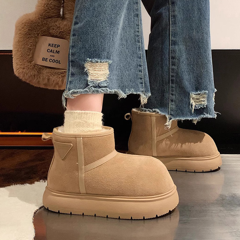 低帮厚底雪地靴女2025新款冬季懒人一脚蹬毛毛棉鞋加绒加厚女鞋子