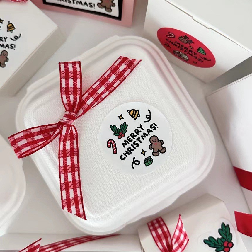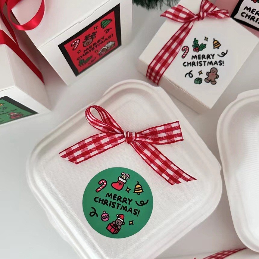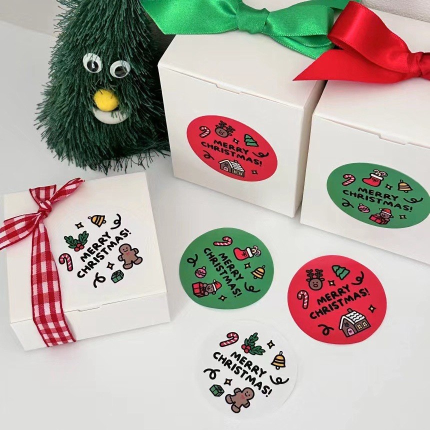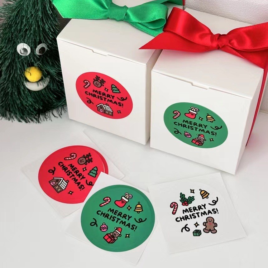 120枚价 圣诞节圣诞元素圆形贴纸卡通礼物手帐装饰贴纸礼品封口贴