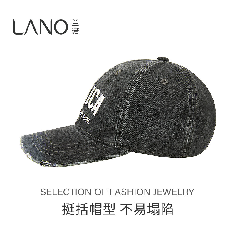 兰诺纯棉字母棒球帽女2025秋季新款硬顶鸭舌帽子红色黑色紫色休闲