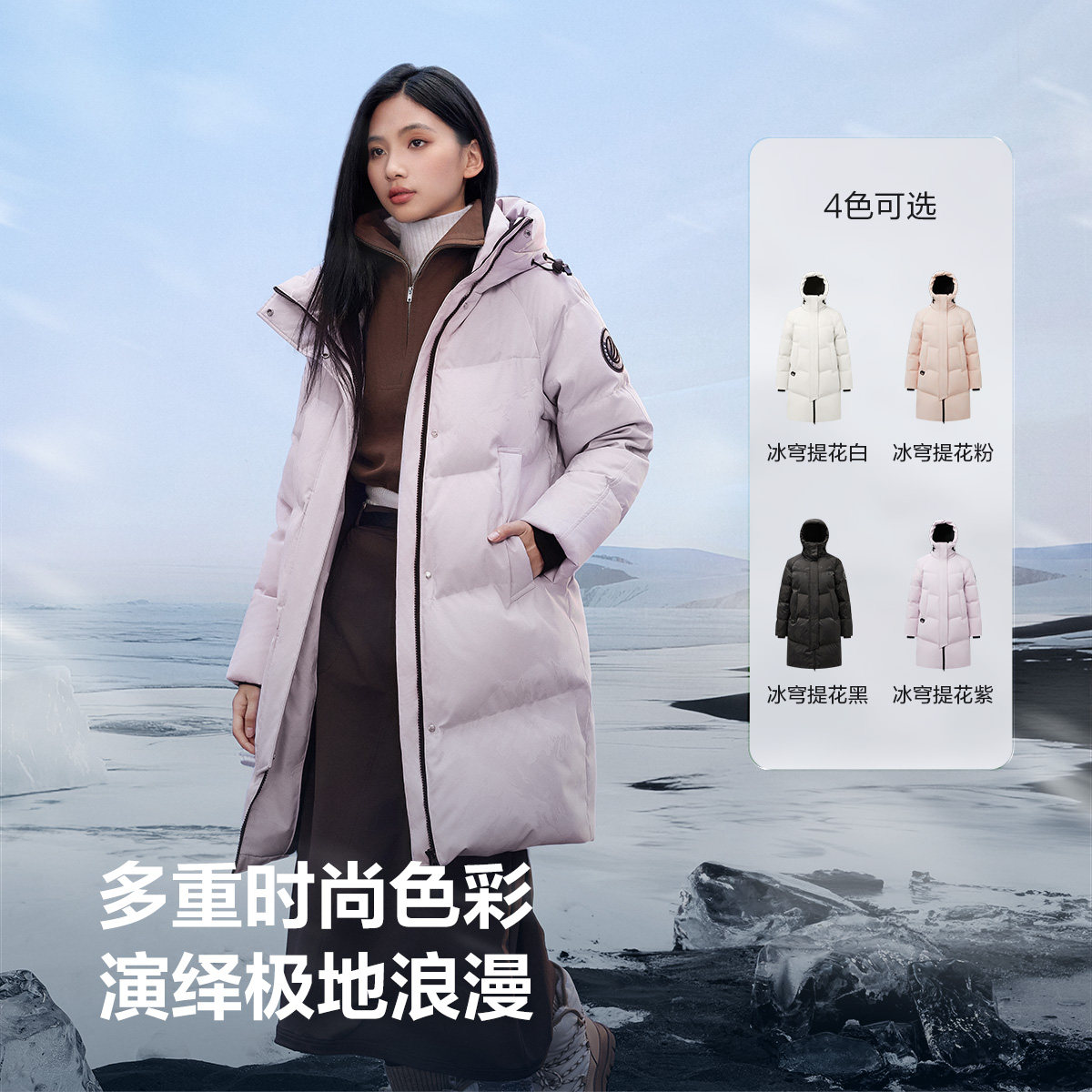 波司登2025冬季新款女极寒鹅绒中长款防寒加厚户外紫色羽绒服2304