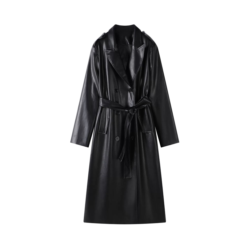 Eland衣恋皮衣女纯色带拉链长袖翻领外套2025冬季新款