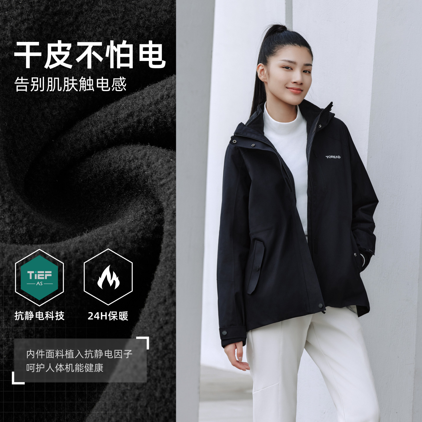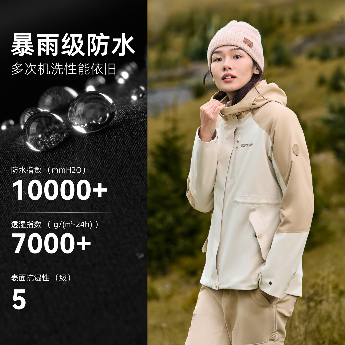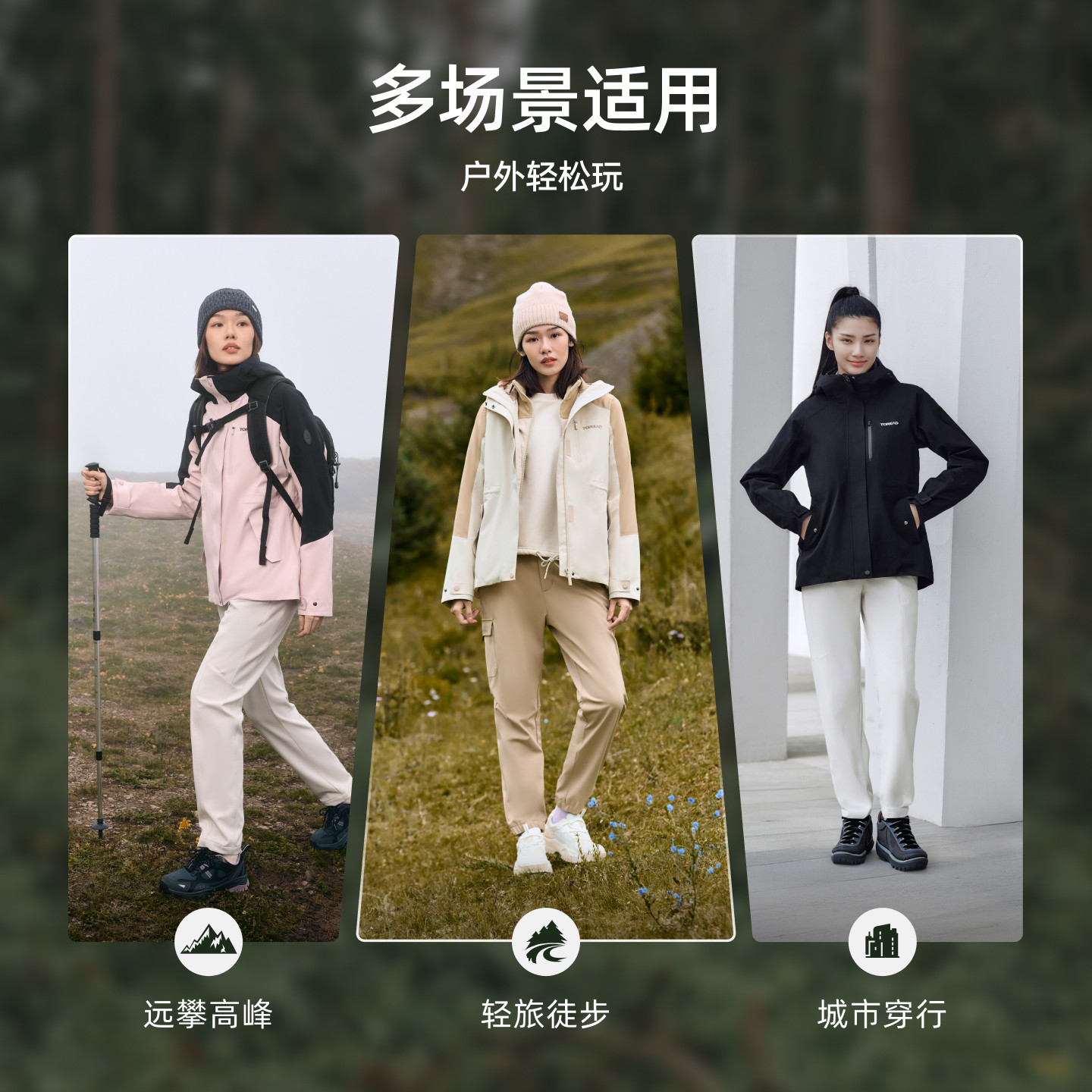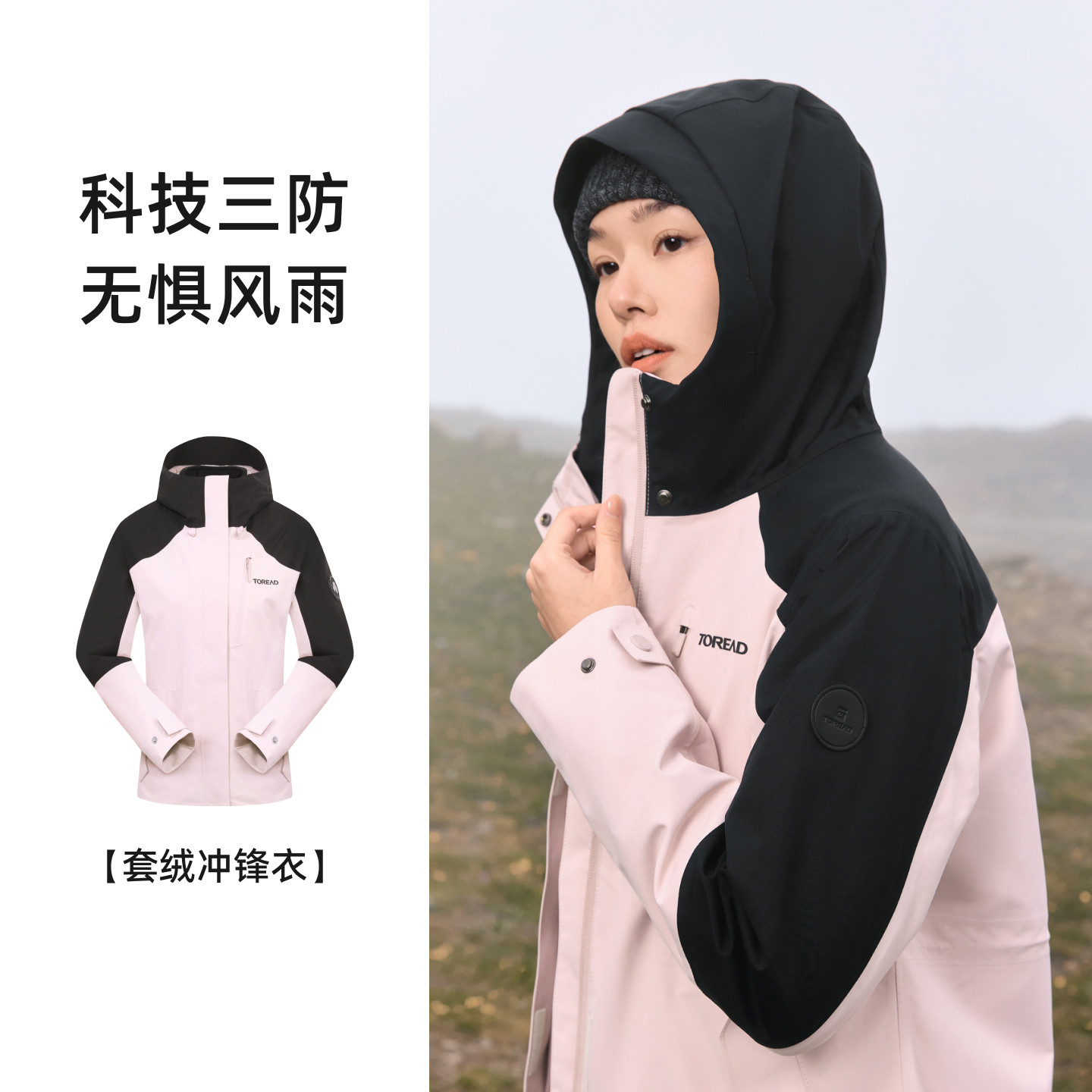 探路者冲锋衣女士户外徒步登山暴雨级防水三合一保暖防风外套