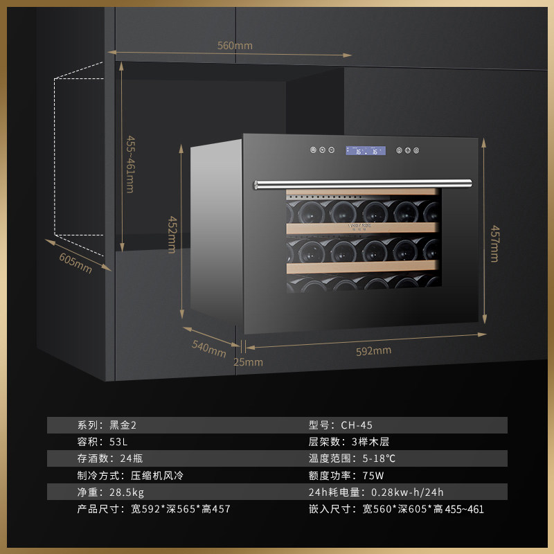 VINGARDE维佳德CH-45全嵌入式红酒柜恒温红酒柜家用葡萄酒柜冰吧