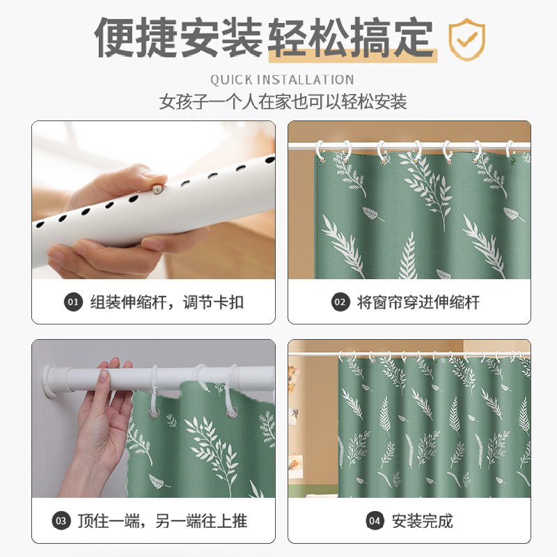 免打孔窗帘出租屋隔断神器可伸缩杆遮挡帘玄关卧室过道门帘田园风