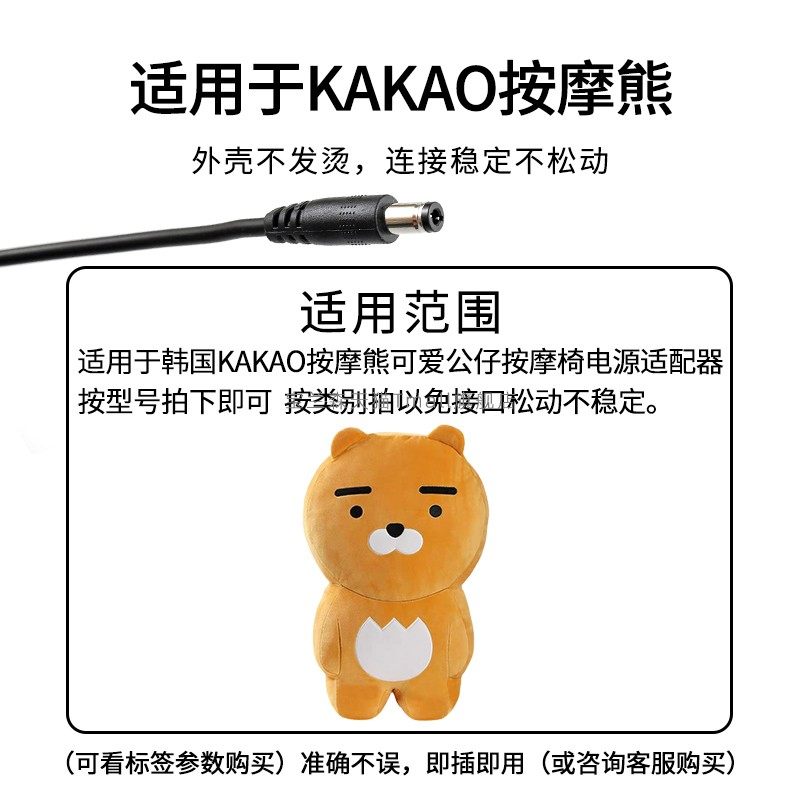 适用韩国KAKAO按摩熊可爱公仔按摩椅电源线12V甩脂机抱枕腰带按摩枕办公椅12v2a充电器