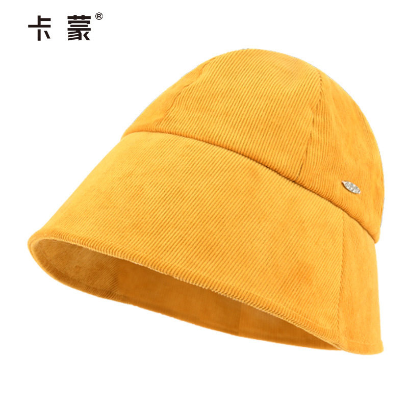 卡蒙灯芯绒日系水桶渔夫帽女士秋冬季纯棉防静电盆帽显脸小帽子