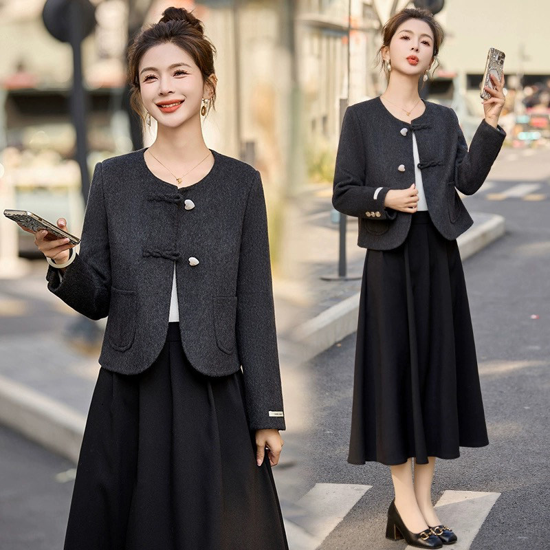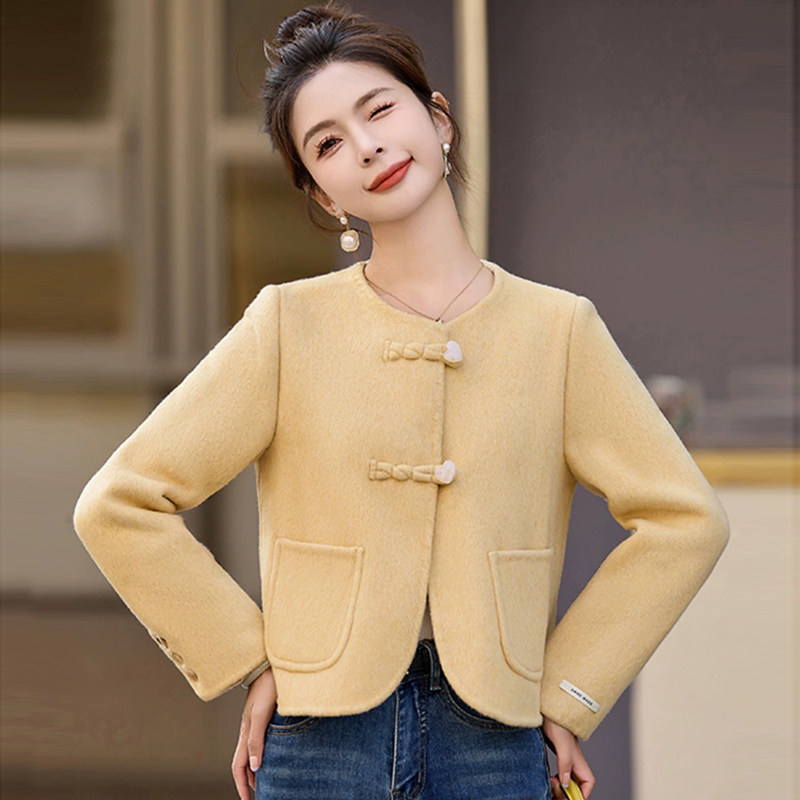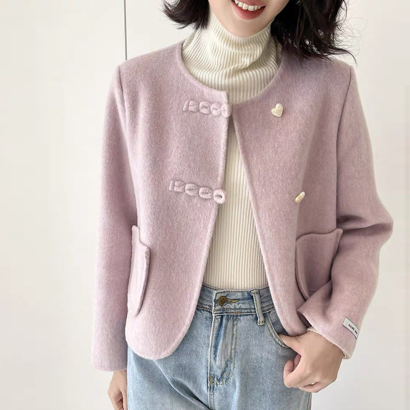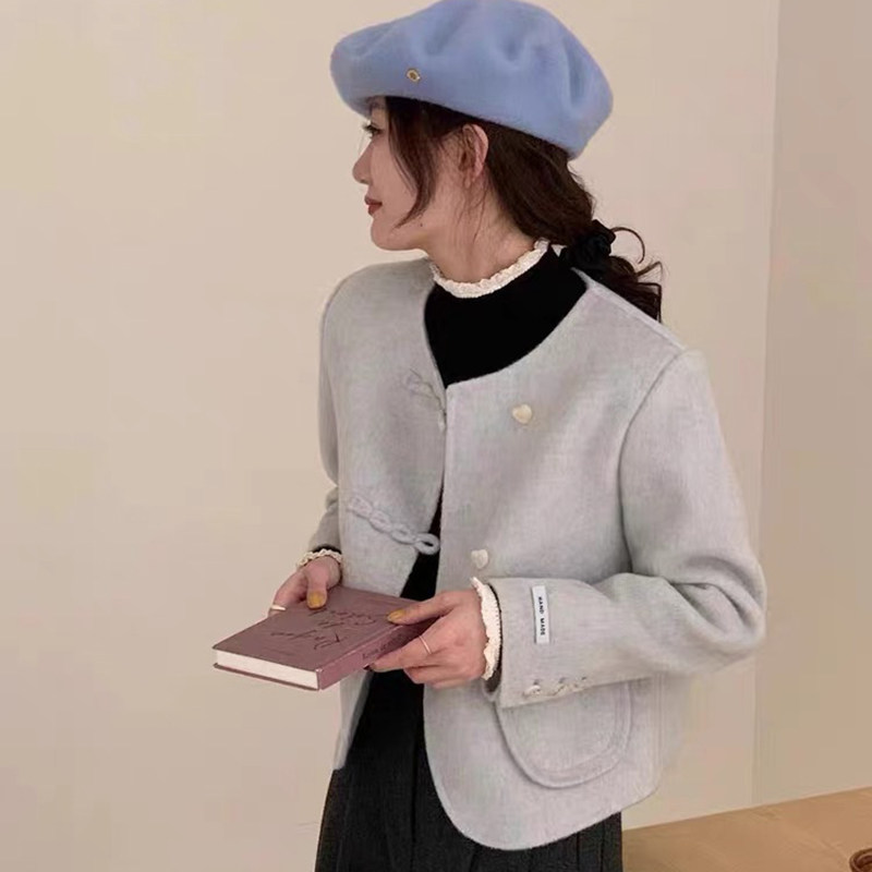 【杉家】撤柜!秋冬女韩系小香风双面羊毛毛呢甜美圆领大衣外套