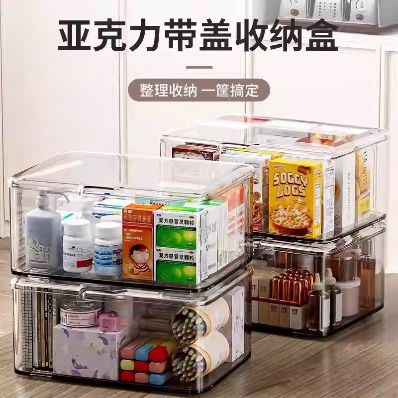 亚克力收纳盒翻盖式桌面透明防尘整理盒卧室宿舍办公室带盖杂物筐