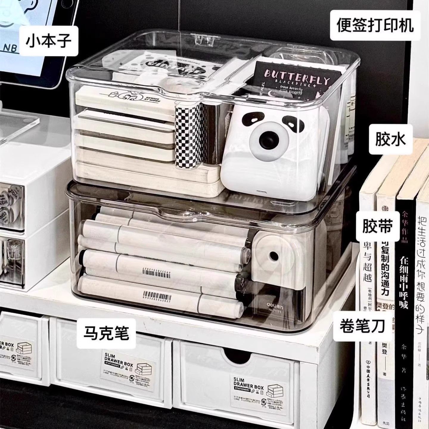 高透亚克力桌面收纳盒翻盖式防尘整理盒卧室宿舍办公室带盖收纳筐