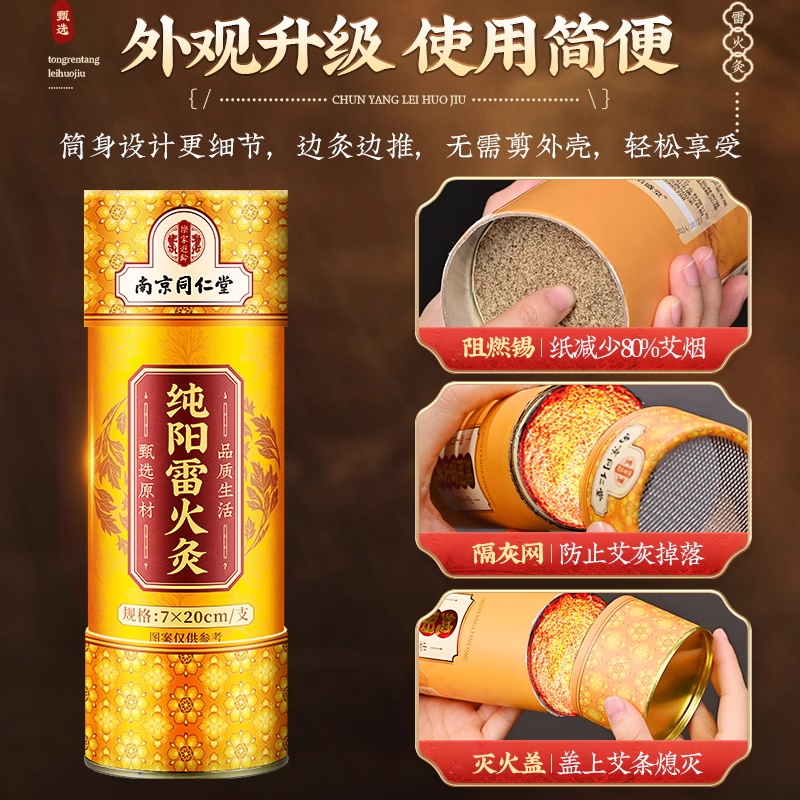 南京同仁堂雷火灸艾条7CM加粗陈年纯艾条艾灸柱官方旗舰店正品