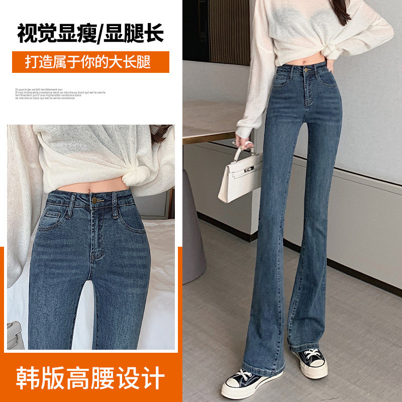 大码微喇叭弹力牛仔裤女春秋季马蹄裤显瘦显高修身直筒喇叭裤加长