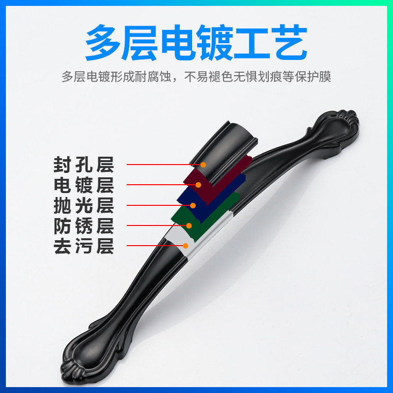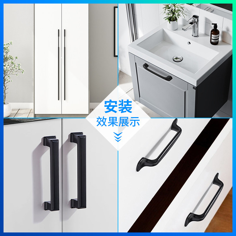美式黑色衣柜门加长拉手现代简约长条整体橱柜鞋柜子超长门把孔距