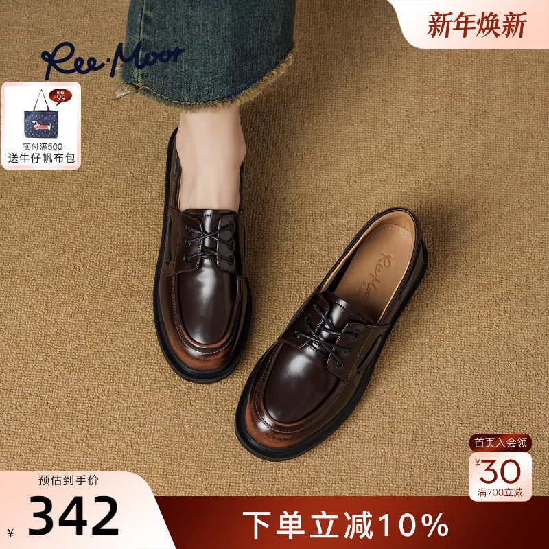 REEMOOR睿慕2025秋季新款英伦风小皮鞋女圆头厚底乐福鞋平底单鞋
