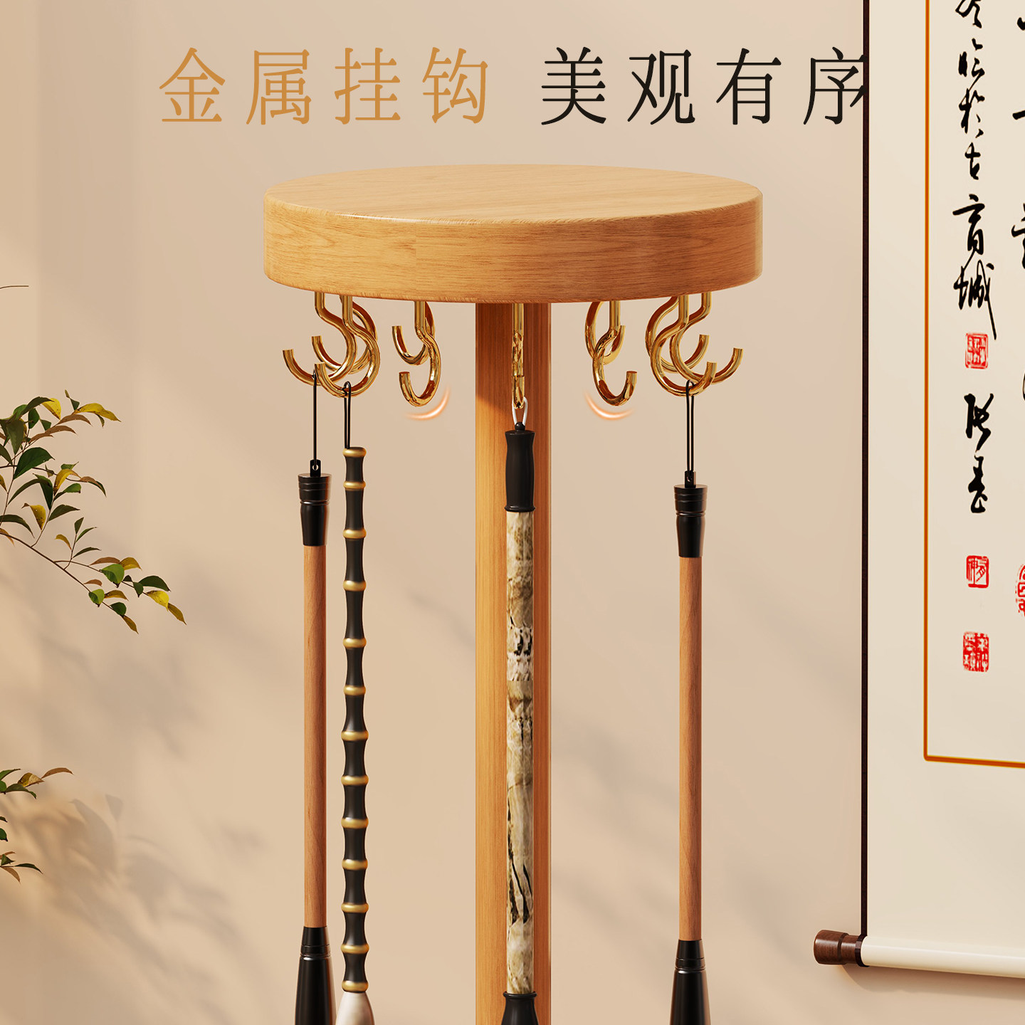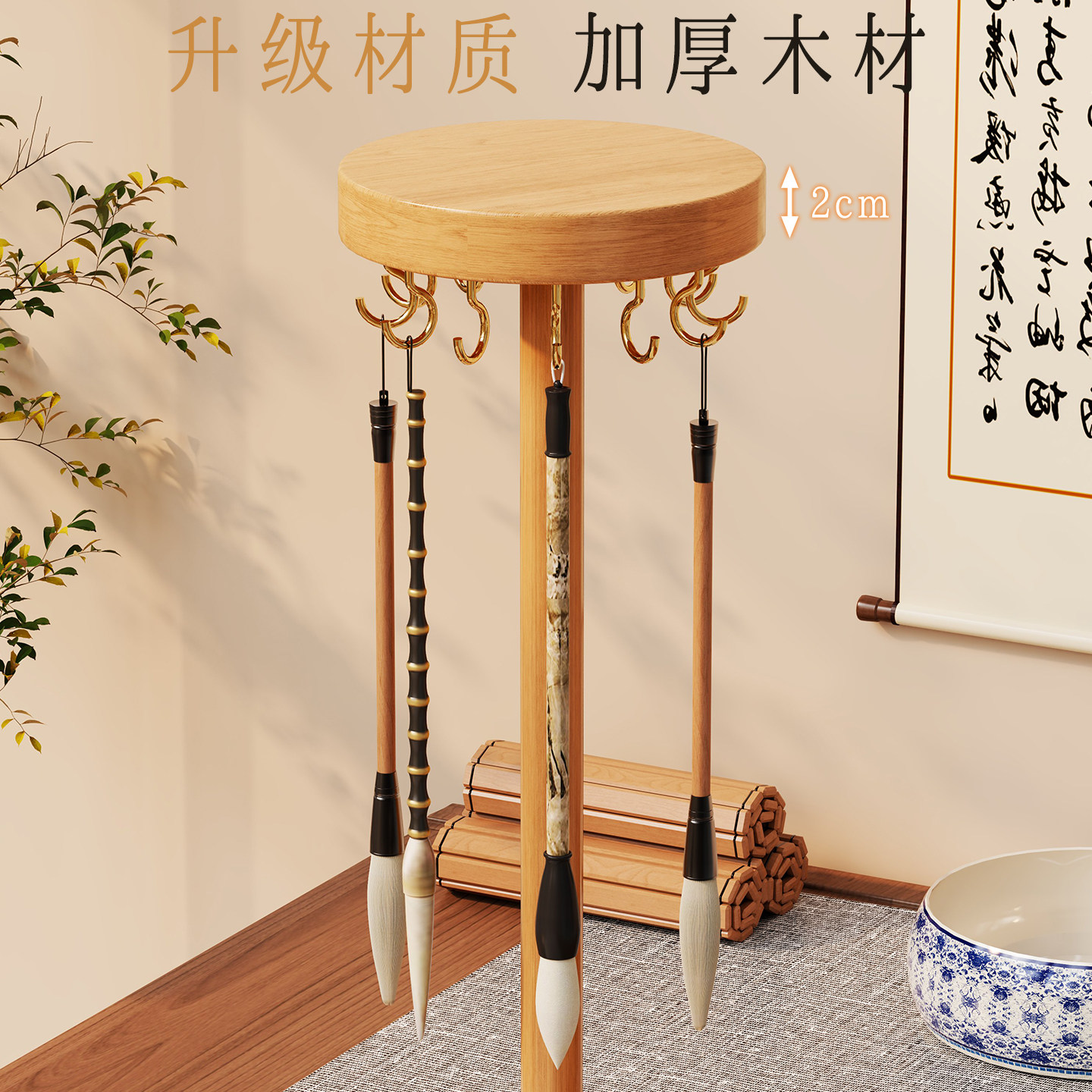 毛笔收纳架桌面实木毛笔架家用书法用品置物架子书桌文房四宝挂架