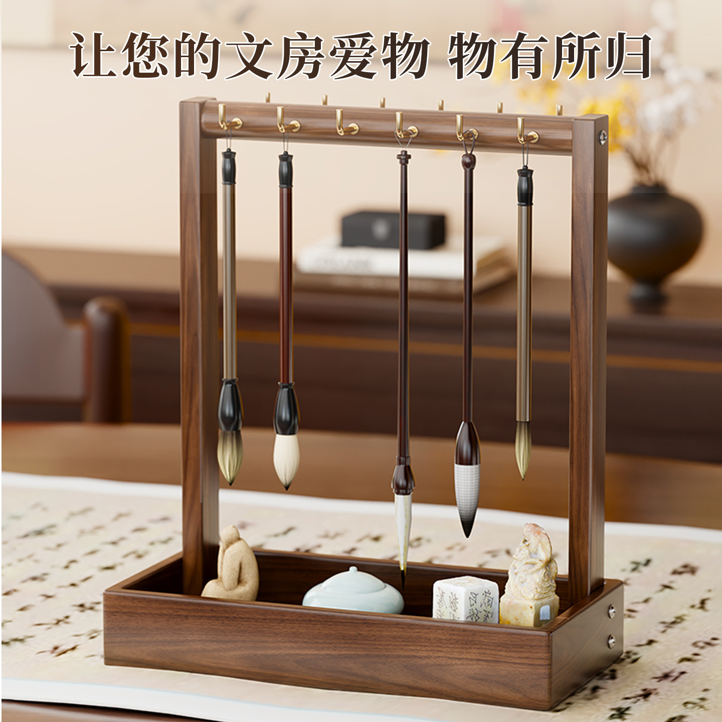 毛笔收纳架桌面书法用品储物架家用文房四宝置物架书桌多钩毛笔架