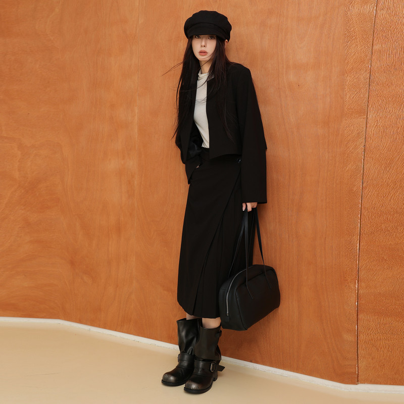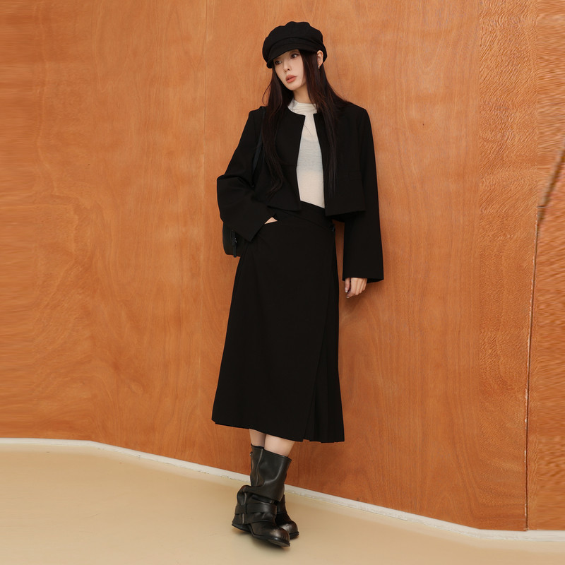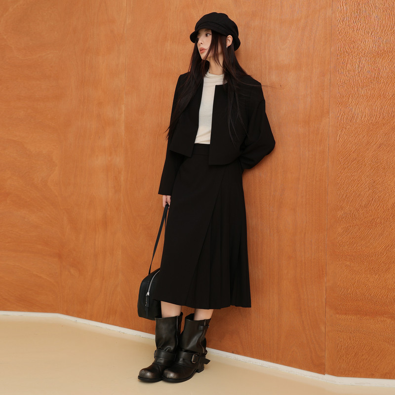 MJ STYLE灰色百褶西装裙女秋冬半身裙高腰休闲大摆a字过膝中长裙