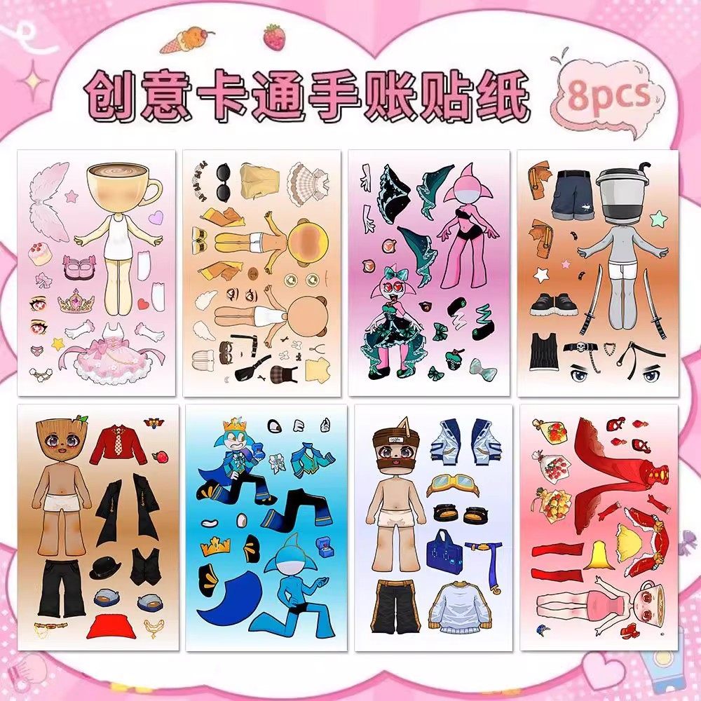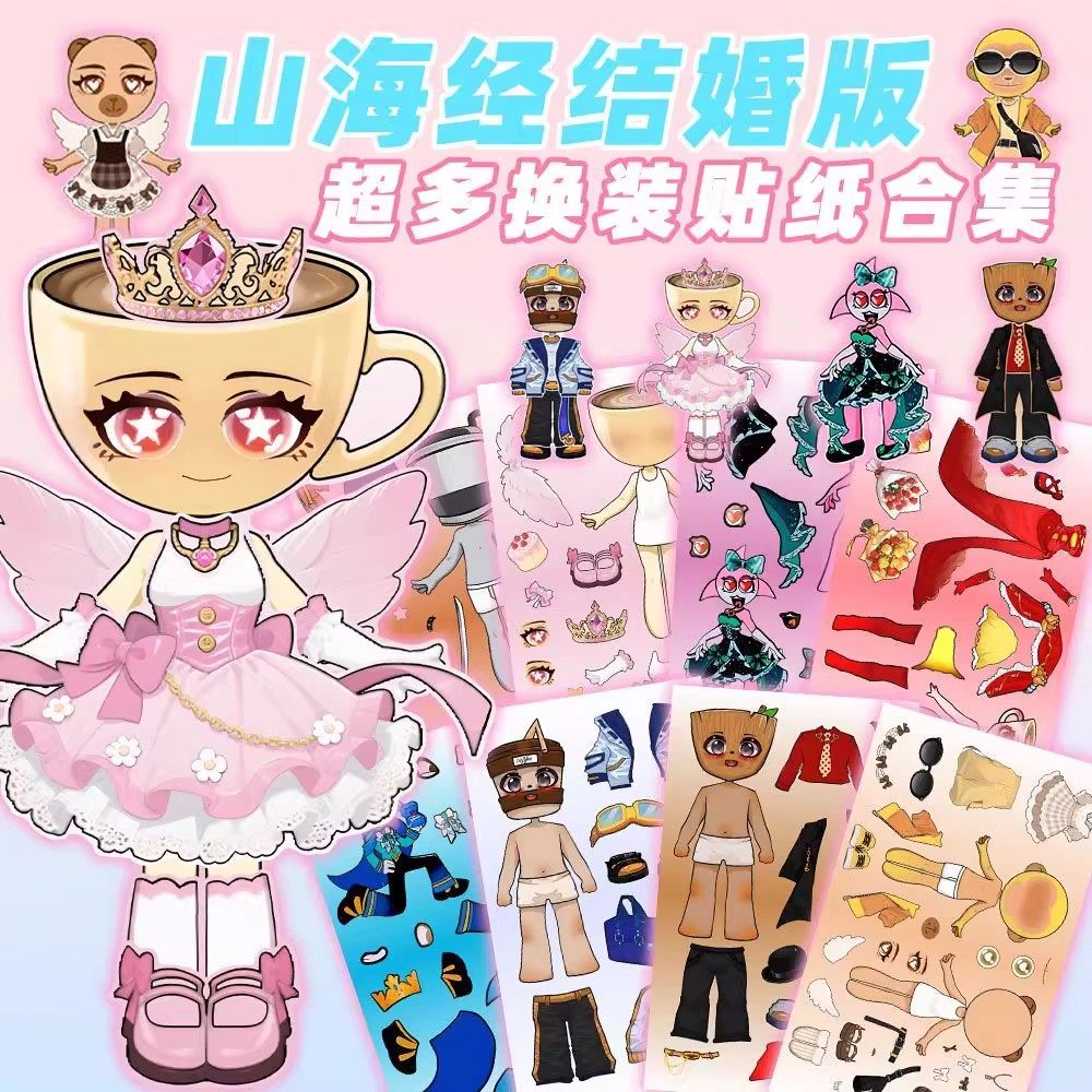 新升级礼服版山海经换装贴纸儿童益智贴趣味咖啡小姐解压手账贴纸