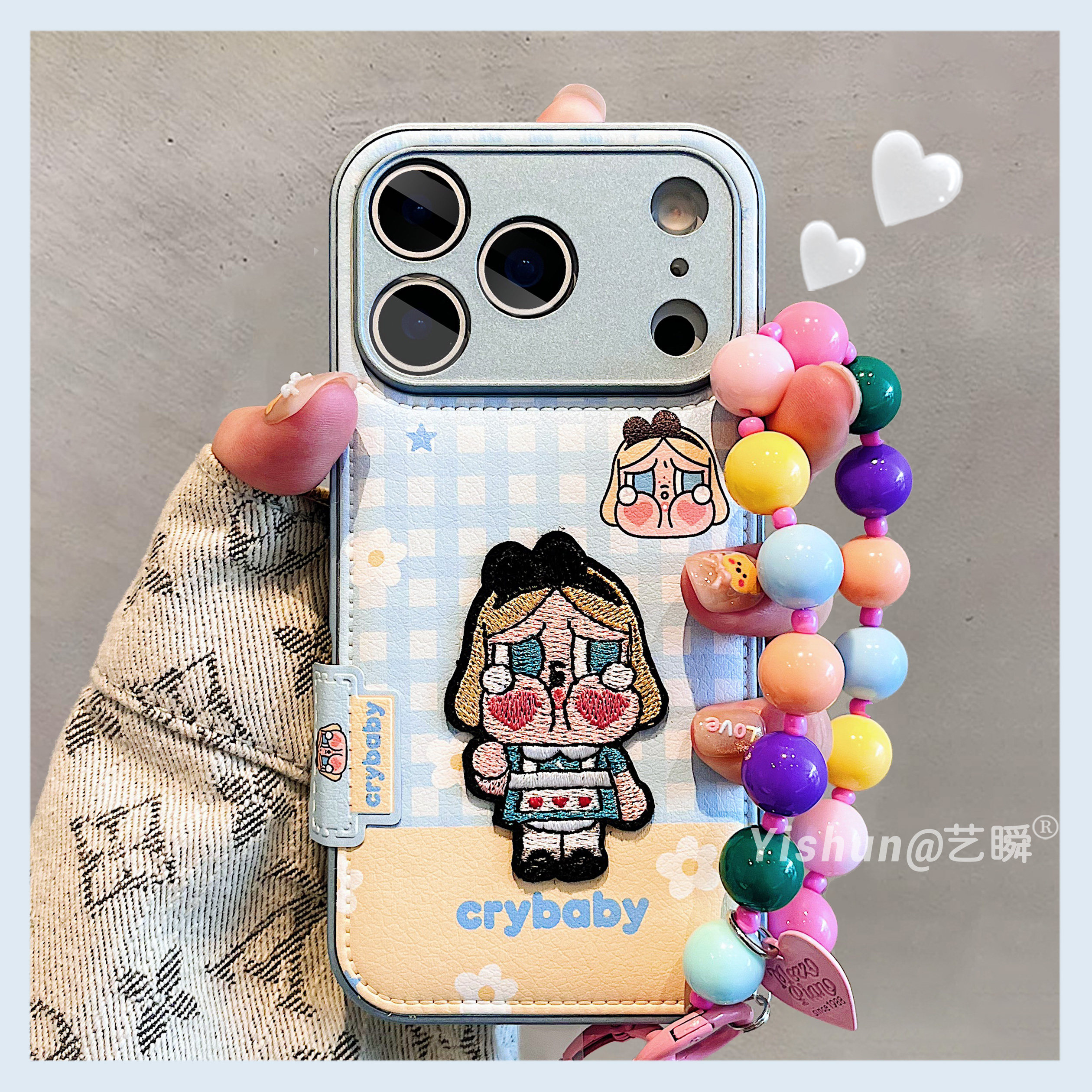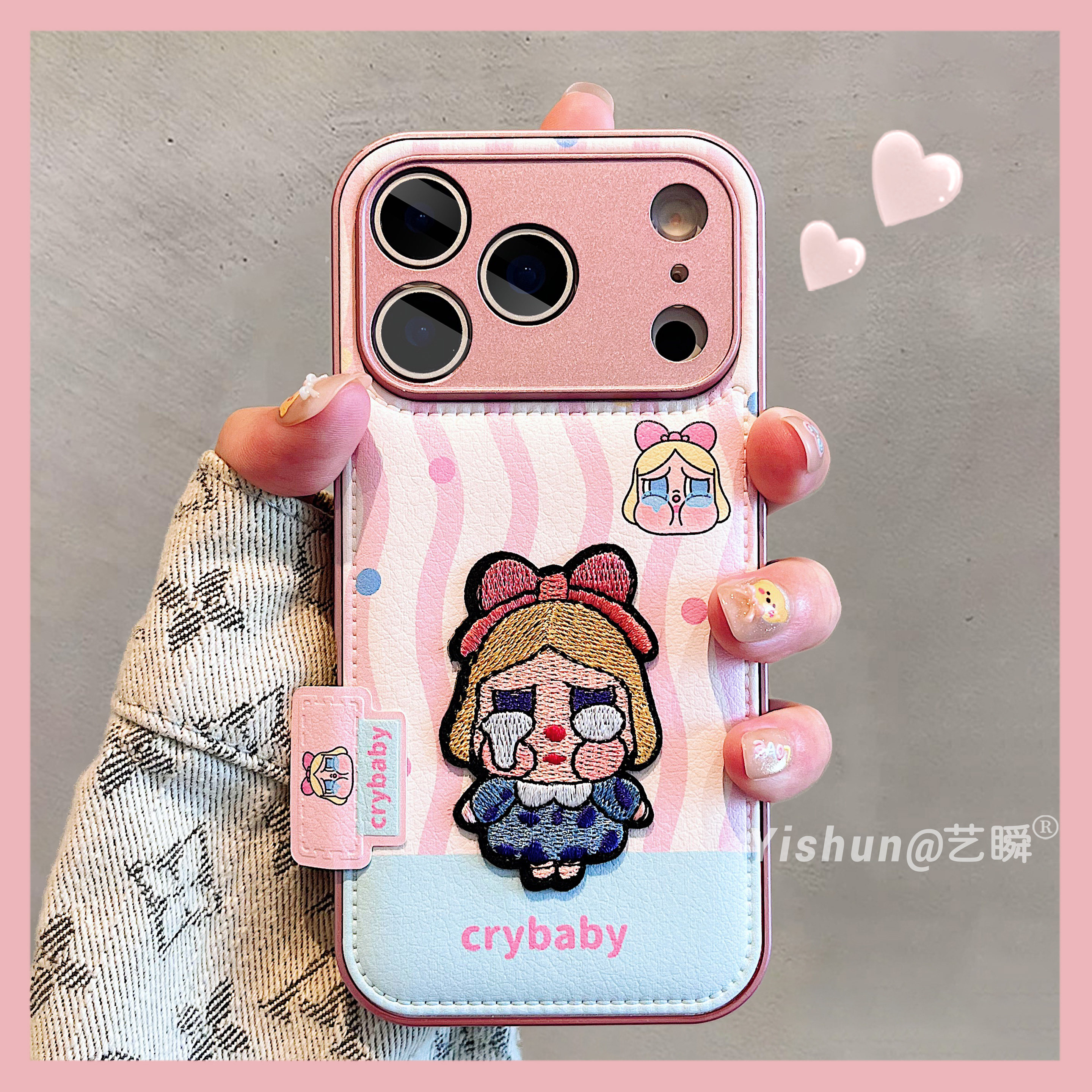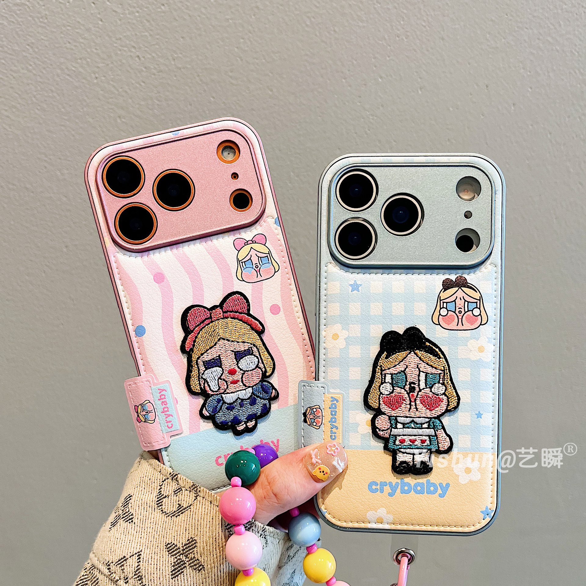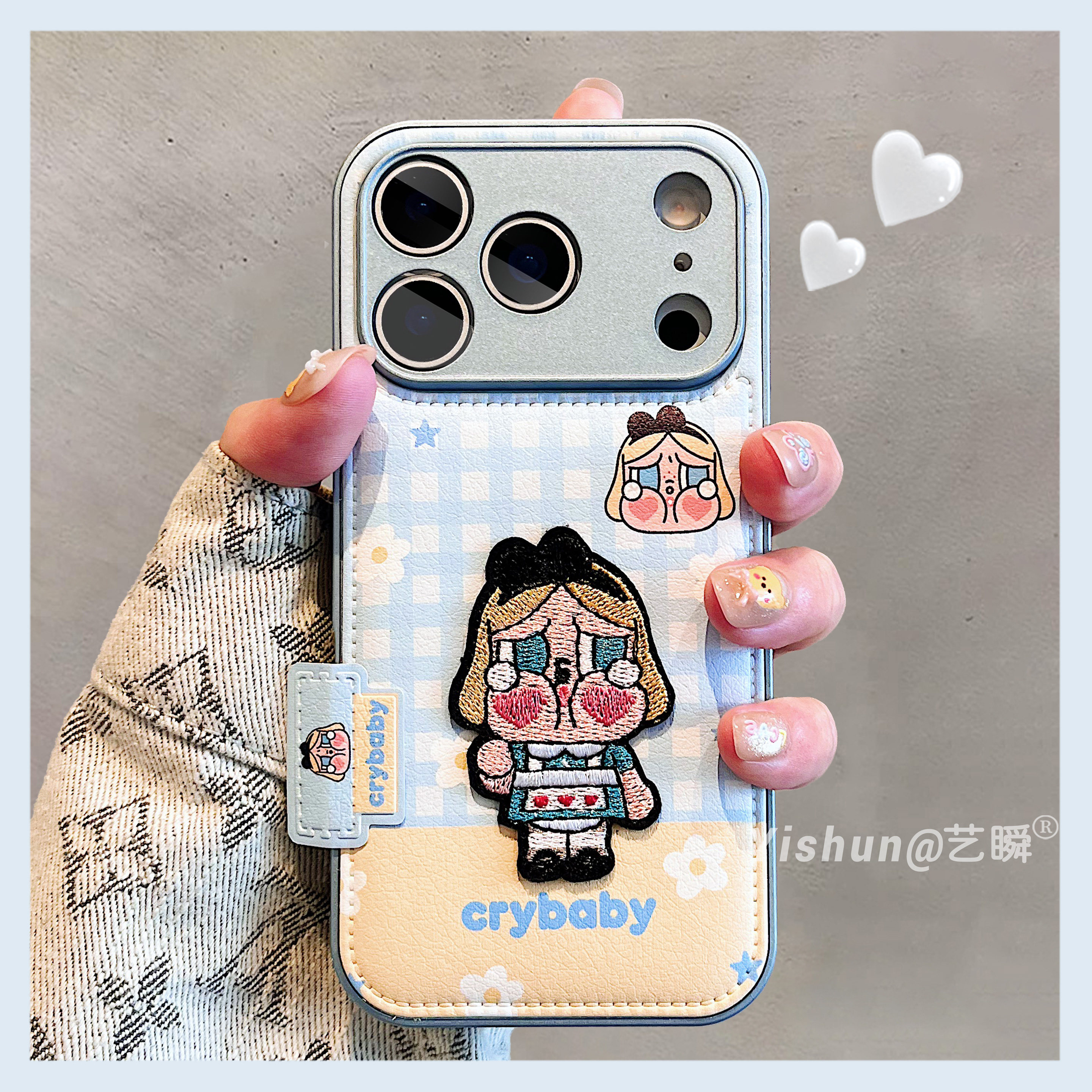 秋冬新款呆萌刺绣爱丽丝哭娃适用iPhone17ProMax手机壳苹果16pro皮质鼓包13全包镜头15pro可爱14女款17保护套