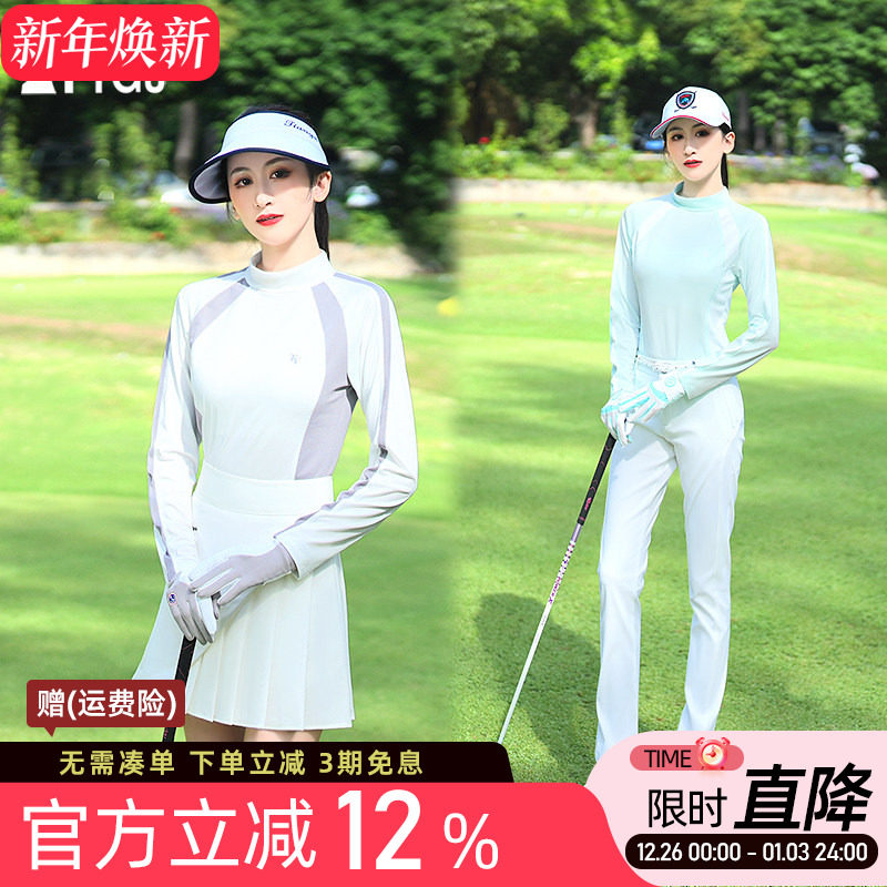 高尔夫球女士款速干防晒长袖衫高领透气网布弹力修身运动上衣服装
