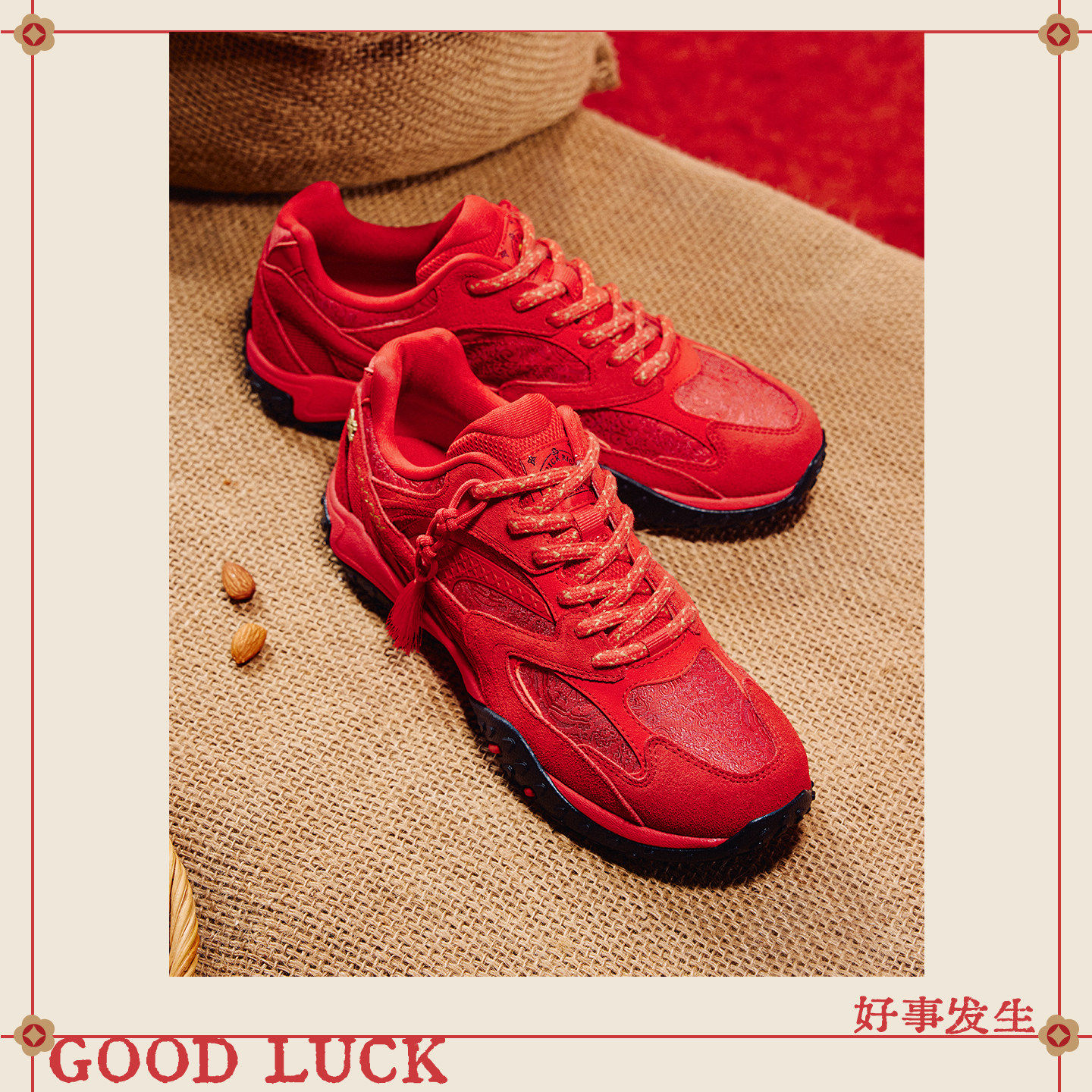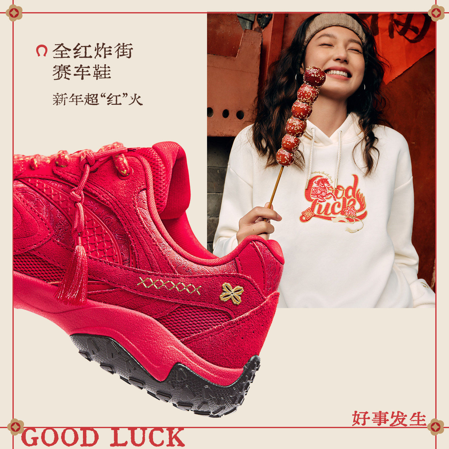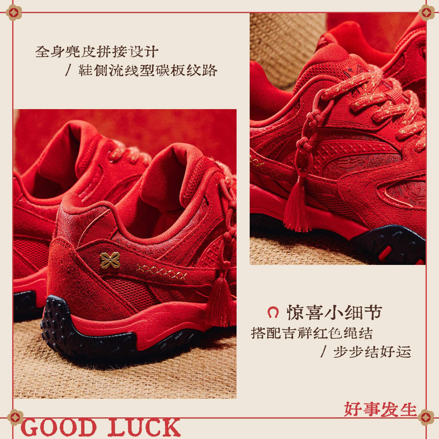 安踏好事发生灵羽休闲鞋女新年款红色马本命年反绒皮百搭运动鞋子